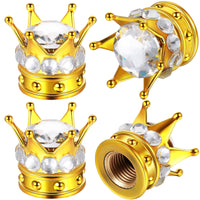 Q: What materials are used in the 4 Pieces Crown Tire Valve Stem Caps?A: The tire valve stem caps are made from durable ABS plastic, coated with polymer clay, and inset with rhinestones, ensuring they are wear-resistant and corrosion-resistant.