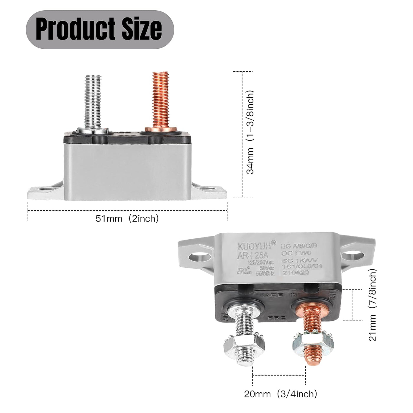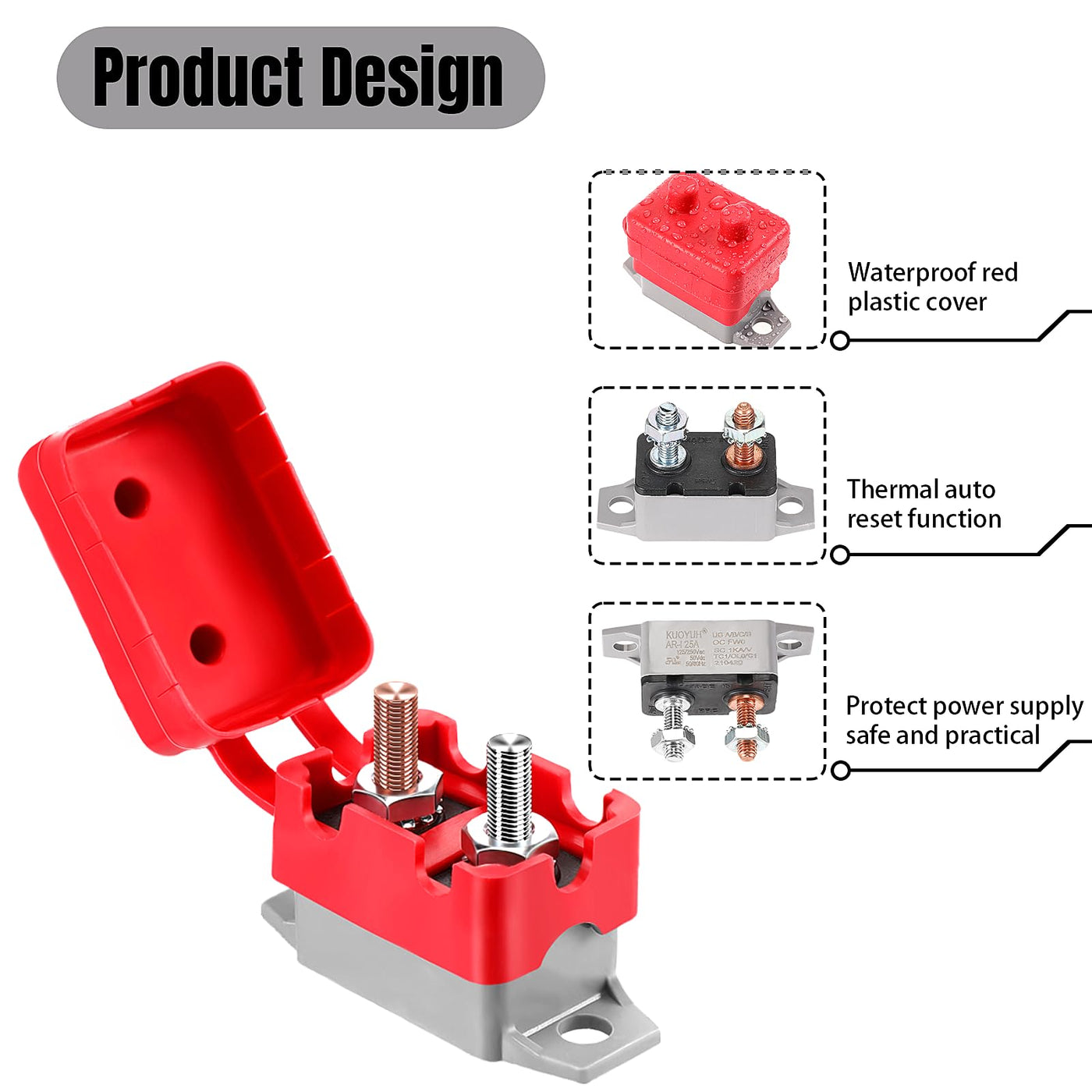 4 Pieces DC 12V - 24V automatic reset circuit breaker circuit breaker with cover stud bolt for automotive and more Functions: Never worry about fuse burn-out with thermal automatic reset feature, power protected when circuit is overloaded/ shorting by this over-current circuit breaker. Where to use: Widely applicable in truck applications, off-road vehicles, yachts, automotive, electromechanical equipment, other vehicles and ships electrical control. Specification: Main material: metal, plastic Color: as picture shows Size: as picture shows Package include: 4 x Automatic reset circuit breakers Note: Please allow a little error on the size due to manual measurement. The color might exist slightly difference due to different displays.
