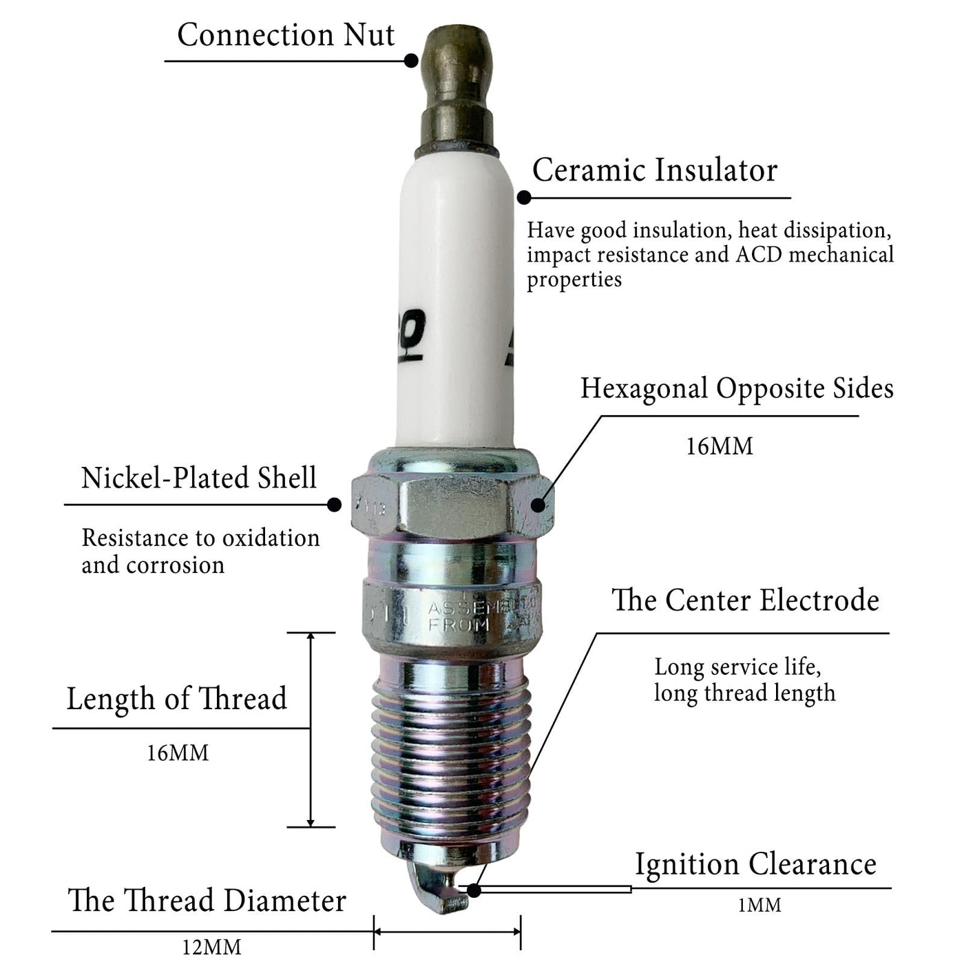 Q: How does the design of these spark plugs enhance performance?A: These spark plugs feature a laser welded center electrode tip and a platinum disc welded to the ground electrode, which contributes to a longer service life and improved ignition performance. This design helps maximize spark efficiency.