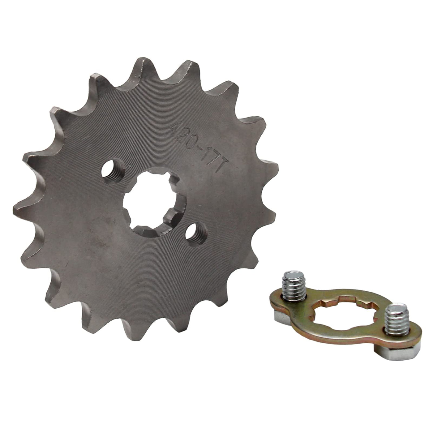 Q: Does the sprocket come with any installation accessories?A: Yes, the 420 17T sprocket includes fix screws and a metal gasket, which are essential for proper installation and functionality.