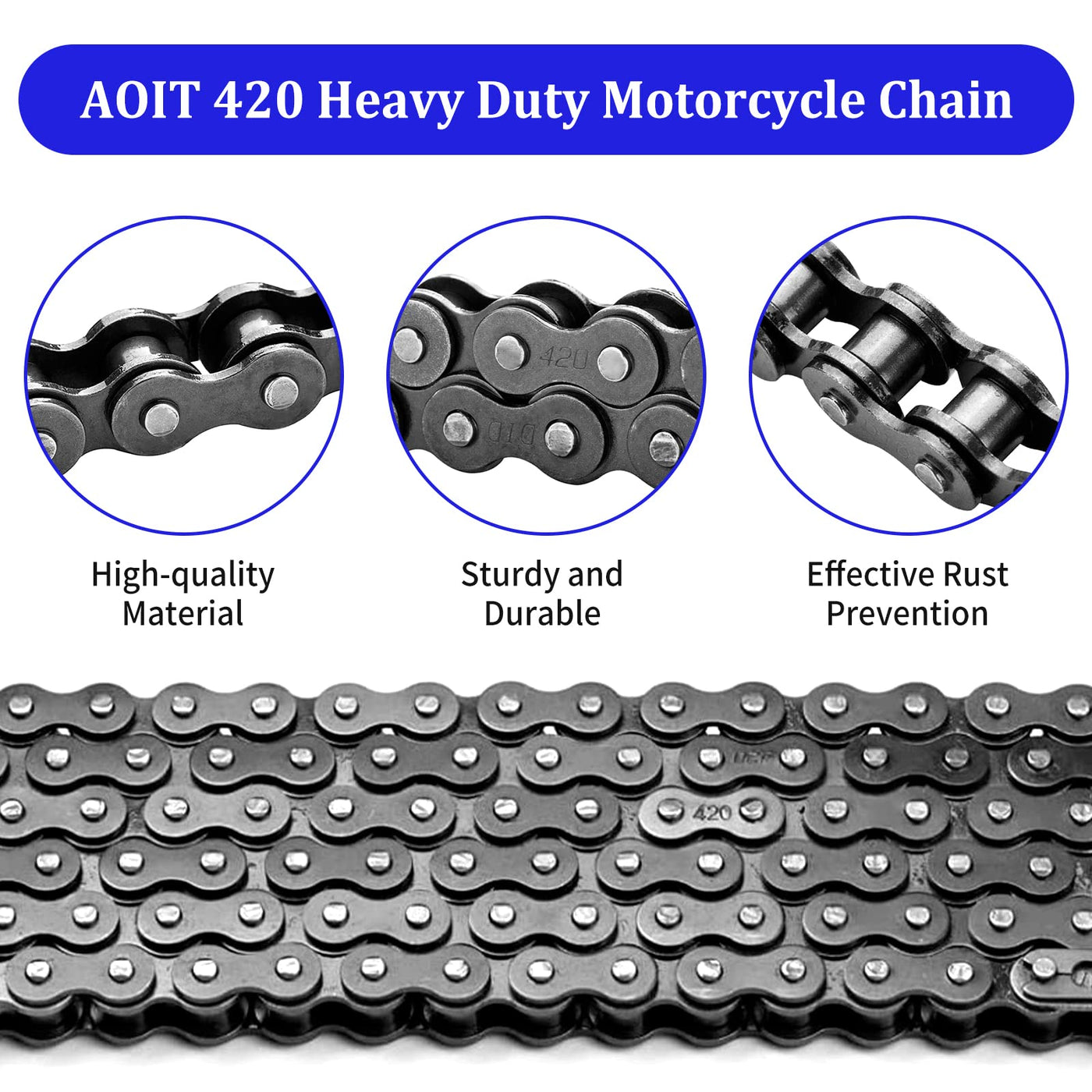 420 Motorcycle Chain Total 110 Links - 420 Standard Roller Chain For 110Cc 125Cc Go Kart Dirt Pit Bike Atv Quad Scooter Mini Bik