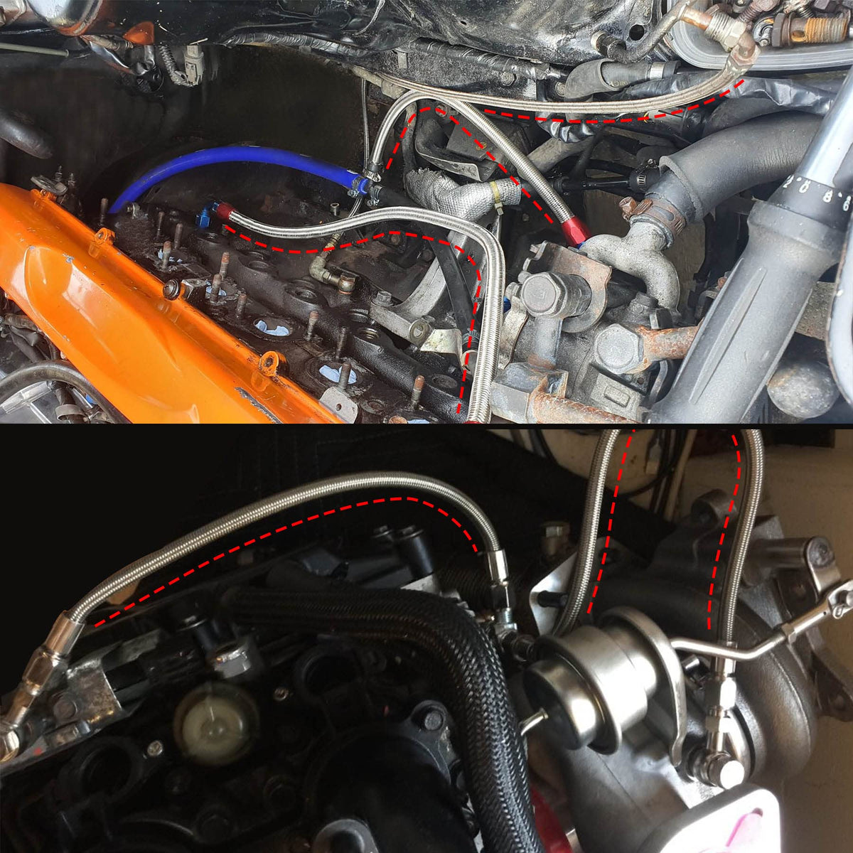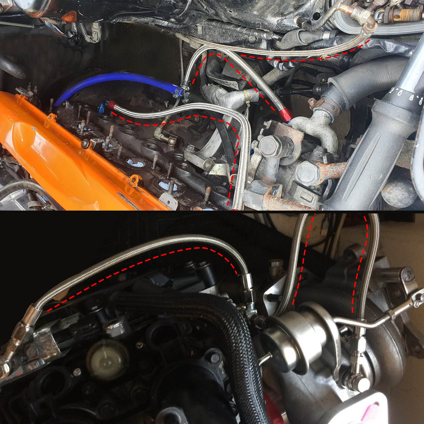 4AN Turbo Oil Feed Line 12'' Turbo Feed Line Length Stainless Steel Braided 4AN Pressure Stainless Remote Turbocharger Oil Drain
