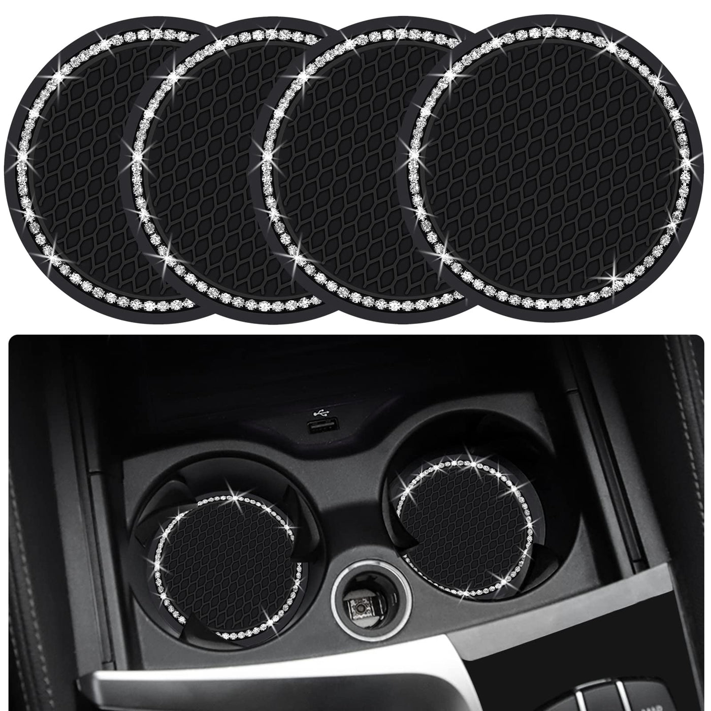 4Pcs 2.75 Inch Bling Auto Car Cup Holder Insert Coasters Silicone Anti-Slip Crystal Rhinestone Drink Car Cup Mat, Universal Vehi