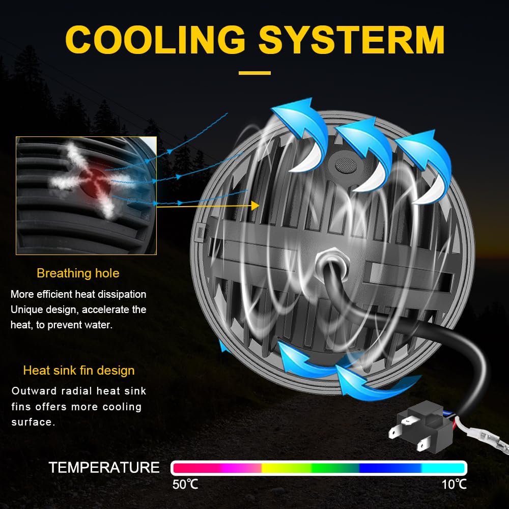 Q: What are the main features of these LED headlights?A: The 4pcs 5.75 inch Round LED Headlights come with three lighting modes: white high beam, white low beam, and white daytime running light (DRL). They offer superior brightness with a 6500K white light, and a projector design improves the light pattern for better visibility without blinding oncoming drivers.