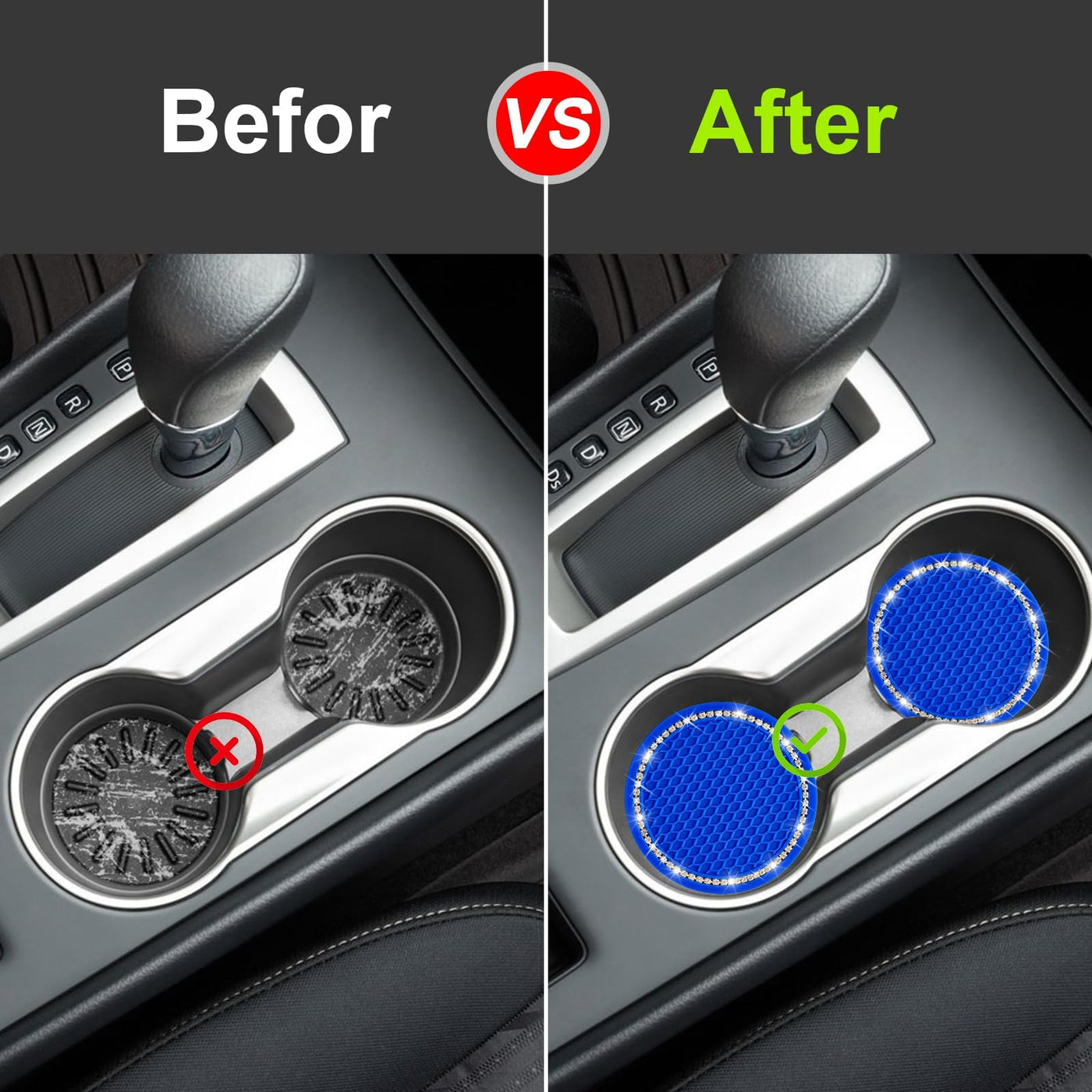 ?High-Quality Silicone Material: Our bling car coaster is made of premium silicone material, which is not only durable but also can avoid rattling effectively. The high-quality silicone material is more soft, flexible, durable, which can stand at high temperature without peculiar smell, no deformation, no discoloration, and non-slip | ?Better Protection for Your Car Cup Holder: Our car cup holder is made to protecting your car and cup with its professional design in all environments. which is water-proof and dust-proof, keep your cup groove clean and tidy. Stop the bottom of cup holders from getting messy and scratching over time, It also can be used at the home office as cup coasters | ?Wide Compatible Size: The diameter size of car cup insert coasters is 2.75 inches, thick is 0.2 inches. This cup holder silicone fits most vehicles' cup holders, which is the same size as those similar mats in the market. Please measure the size of your car cup holder before purchase | ?New Bling Crystal Rhinestone Design: Our coasters designed with crystal rhinestone patterns serve as eye bling in your car. Enhance your car interior look and make your vehicle more stylish | ?Ideal Gift Choice: This bling car cup mat with a crystal rhinestone pattern, which is not only a perfect car decoration, but also a surprising gift to your family, friends, and colleagues on Christmas, birthday, etc