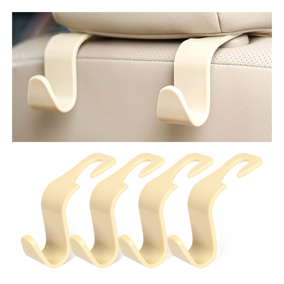 4Pcs Car Seat Headrest Hooks, Auto Back Seat Hanger Holder, Durable Stylish Vehicle Organizer Universal Car Interior Accessories, Storage Hooks For Purses, Bags, Clothes, Coats, Hats (Beige/4Pcs)