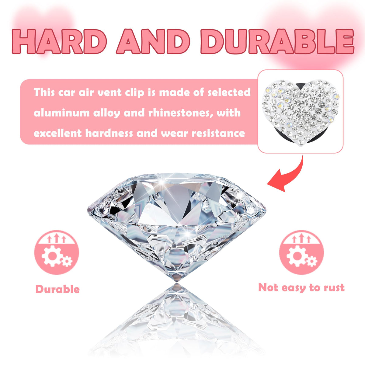 SOPHISTICATED AND SHINY CAR AIR VENT CLIPS ADD A TOUCH OF STYLE TO YOUR CAR'S INTERIOR!??Product Attributes? Colors: White/Pink? Sizes: 1.73 1.18 1.06 inch? Weight: 1.44 oz? Material: Rhinestone? Packaging: 4* car vent clips??Product Functions? Feature: Stylish, shiny, hard and wear-resistant? Function: For decorating automobile air vent