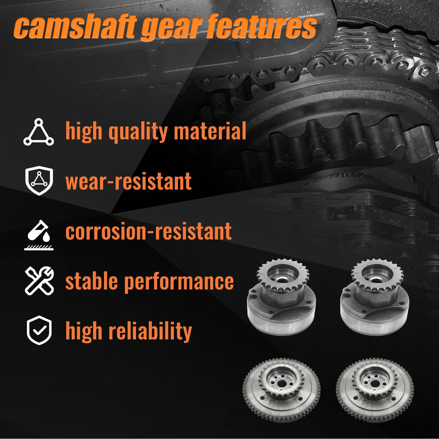 Q: What is the quality of the materials used in this camshaft sprocket?A: The camshaft sprocket is made from durable, wear-resistant, and corrosion-resistant materials, ensuring stable performance and high reliability over time.