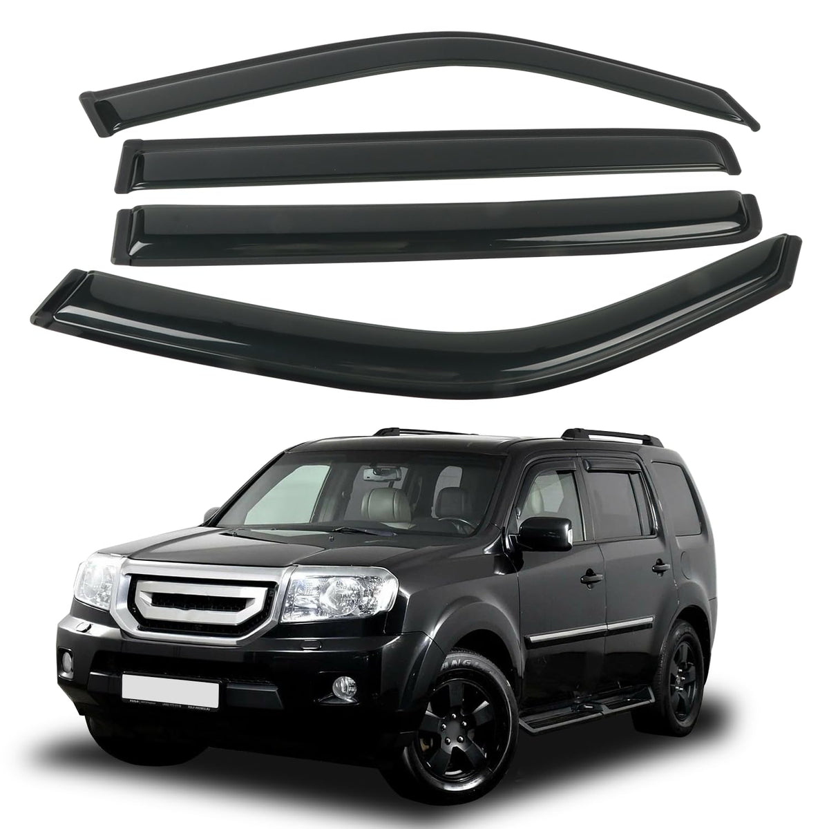 4PCS rain guards window visors Wind deflector Fits For Honda Pilot 2009-2015, Front & Rear Outside Mount Vent Shade 2010 2011 2012 2013 2014 The rain guards for 2010 honda pilot car window construct with high-grade impact-resistant acrylic thats scratch resistant, car wash safe, and will never fade or discolor from exposure to the sun. You could enjoy the fresh air and keep the rain drops out after installing the vent visors window shade and keeping the window cracked open, no foggy worries.