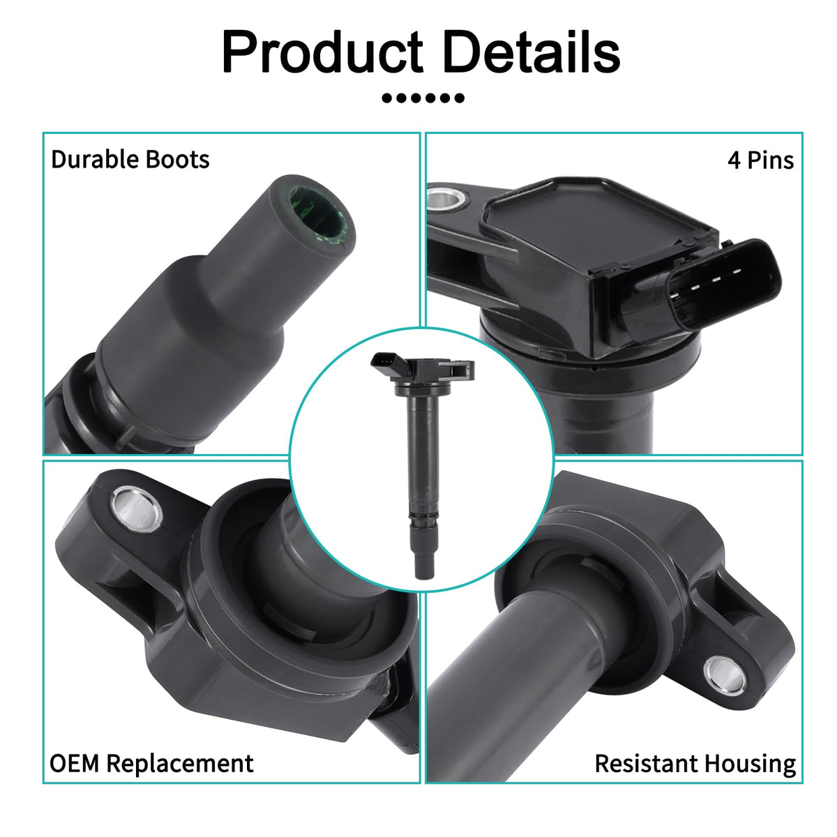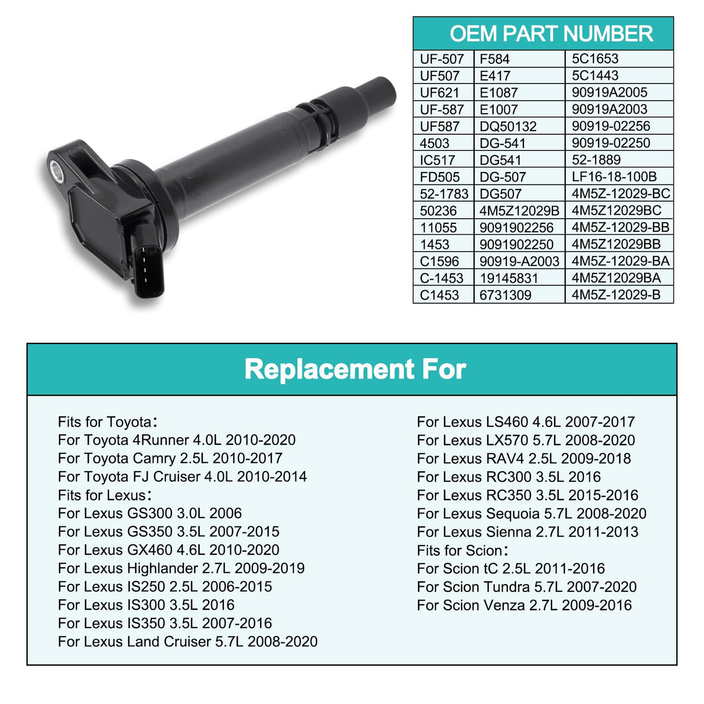 4Pcs Uf507 Ignition Coil Pack For Toyota Avalon Camry Rav4 Highlander Sienna Sequoia Tundra Land Cruiser Land Cruiser Tundra,Sci