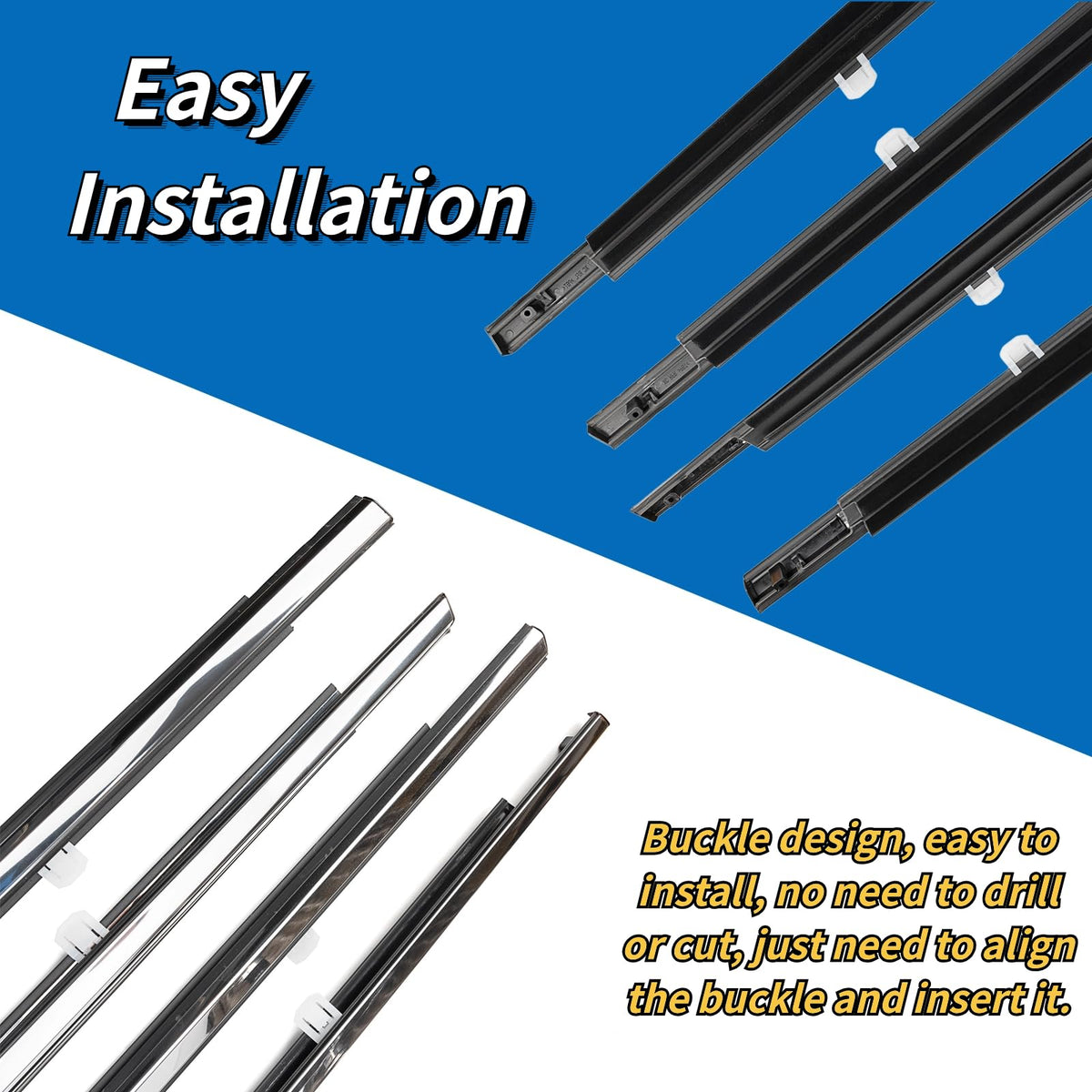 4PCS Window Weatherstrip Compatible With: 2008-2012 Honda Accord Replace Part Number: 72450-TR0-A01 72410-TR0-A01 72950-TR0-A01 72910-TR0-A01 Features: Easy to install, no need to drill or cut, just need to align the buckle and insert it. Installation Steps 1.Remove the old Window Weatherstrip 2.Clean up the surface 3.Buckle Alignment Position 4.Perfect installation Package Includes: 4x Door Window Moulding Trim Seal Belt (Driver , Passenger , Front & Rear)