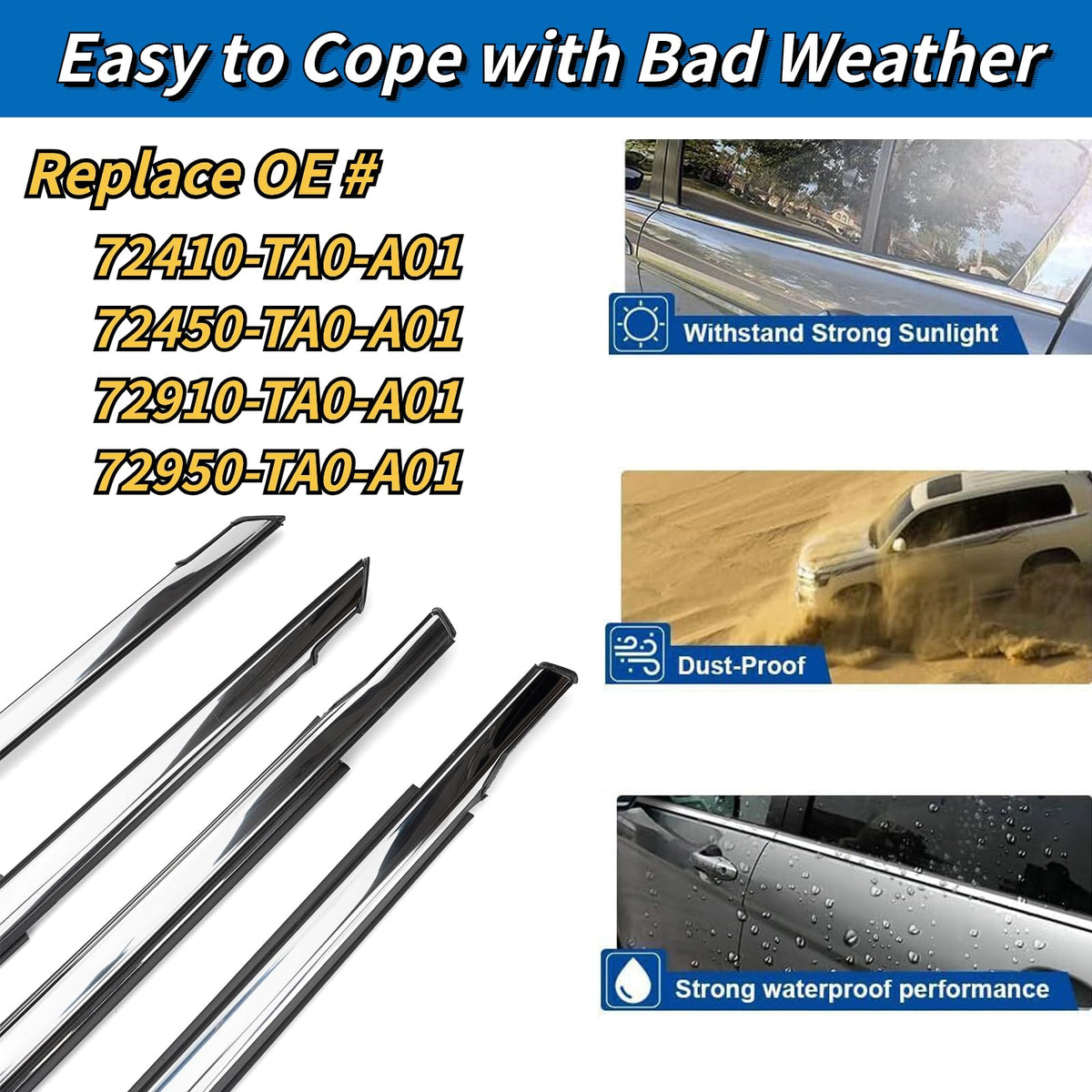 4Pcs Weatherstrip Window Moulding Trim Seal Belt Compatible With 2008-2012 Honda Accord Replaces#72410-Ta0-A01 72450-Ta0-A01 729
