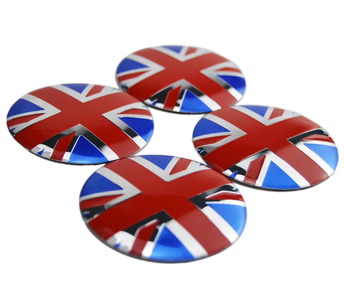 4X Union Jack UK Flag Wheel Hub Center Cap Cover Emblem Overlay for Mini Cooper 52mm 2 inches Hub Center Cap