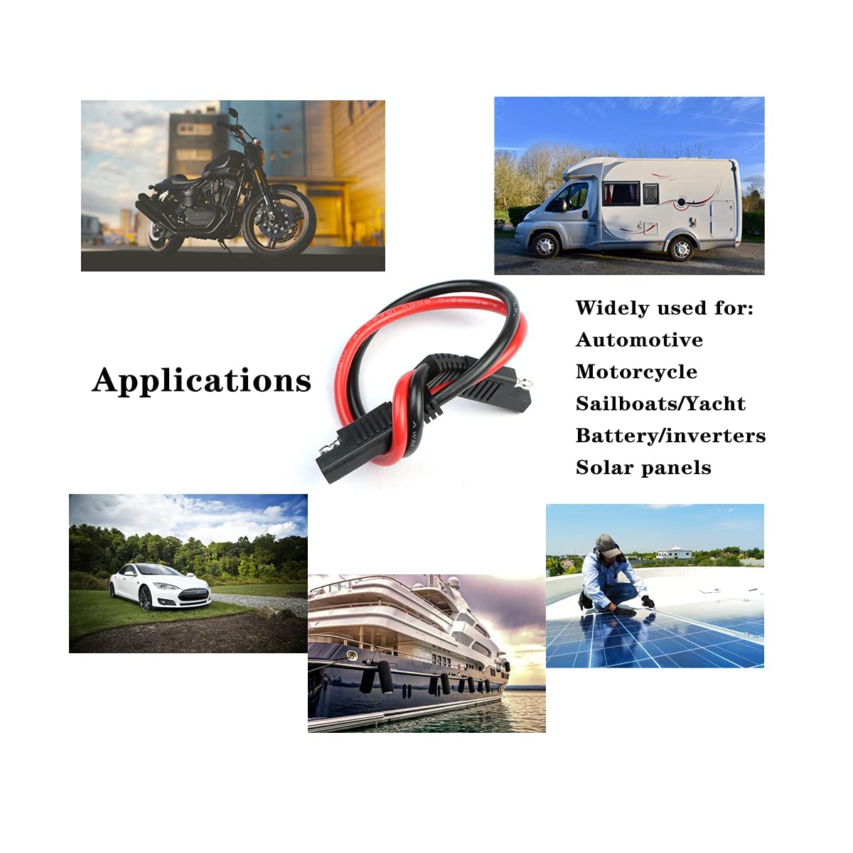 5 Pack 14 Gauge Quick Disconnect Wire Harness SAE Connector Bullet Lead Cable for Motorcycle Boat Car Tractor - 12in Red and Bla