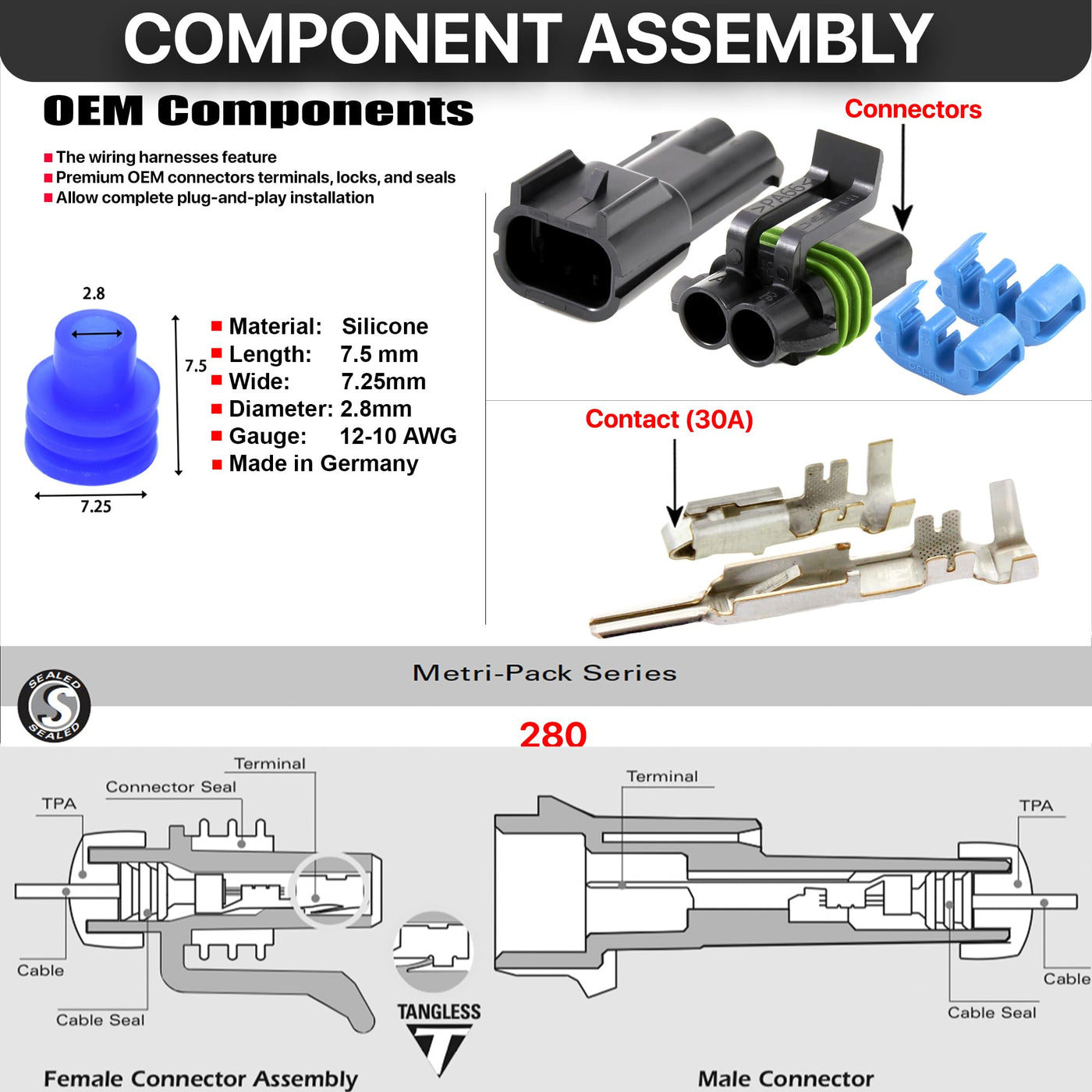 5-Pack (2-Pin) 30Amp Metri-Pack Waterproof Connector Terminals And Seals 12-10Awg