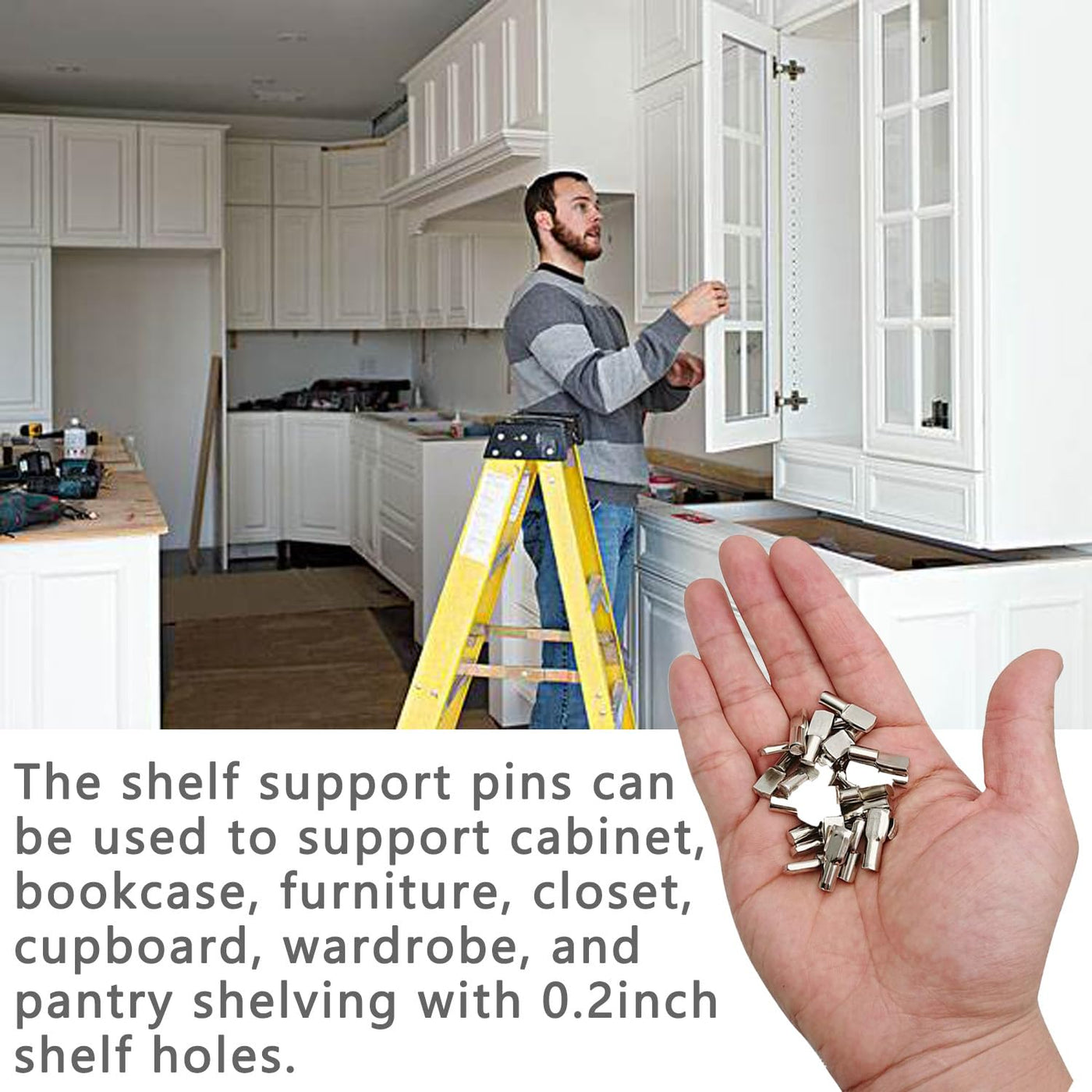 Q: How many shelf pegs are included in the package?A: Each package contains 60 pieces of nickel-plated flat spoon shelf support pegs, providing ample support for your shelving needs.