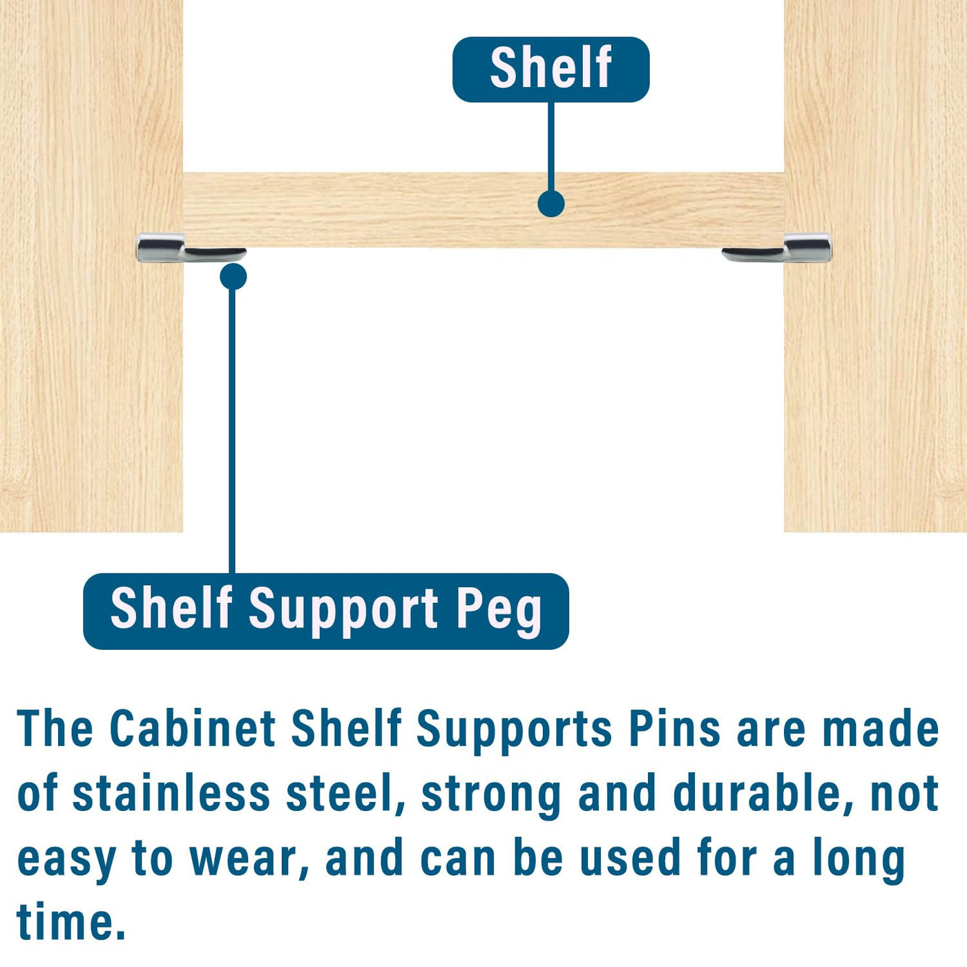 Q: What material are the shelf pegs made from?A: The shelf pegs are made from high-quality zinc alloy with a polished nickel finish, ensuring durability and a smooth surface for long-lasting use.