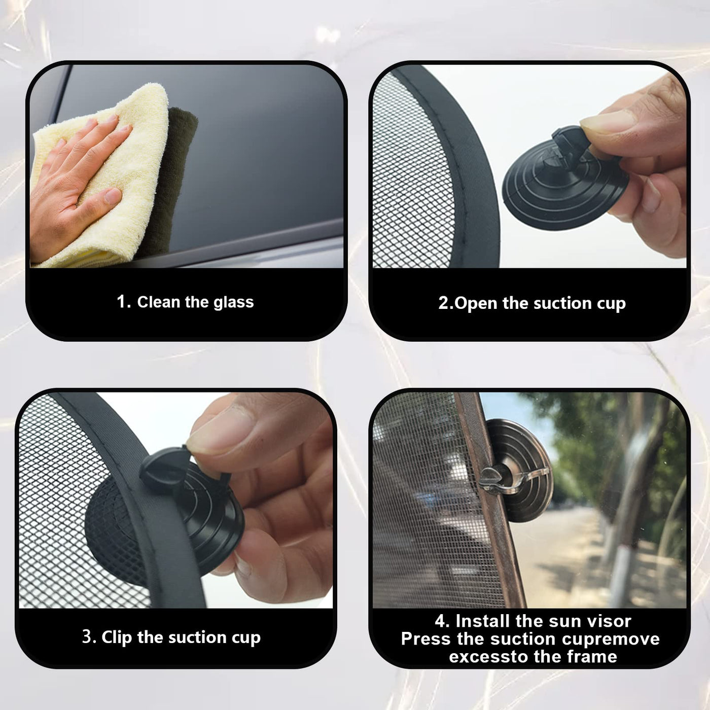 Describe:It's a stylish sunshade that attaches directly to the Rear window and helps keep the car cool. Its clever design protects passengers and pets from the sun.Tips:Summer high temperature and prolonged suction can cause the suction cups detach, you can put a little water around the suction cups, adsorption resistance can be strengthened.packing list:Rear window sunshade*1Suction cup*4