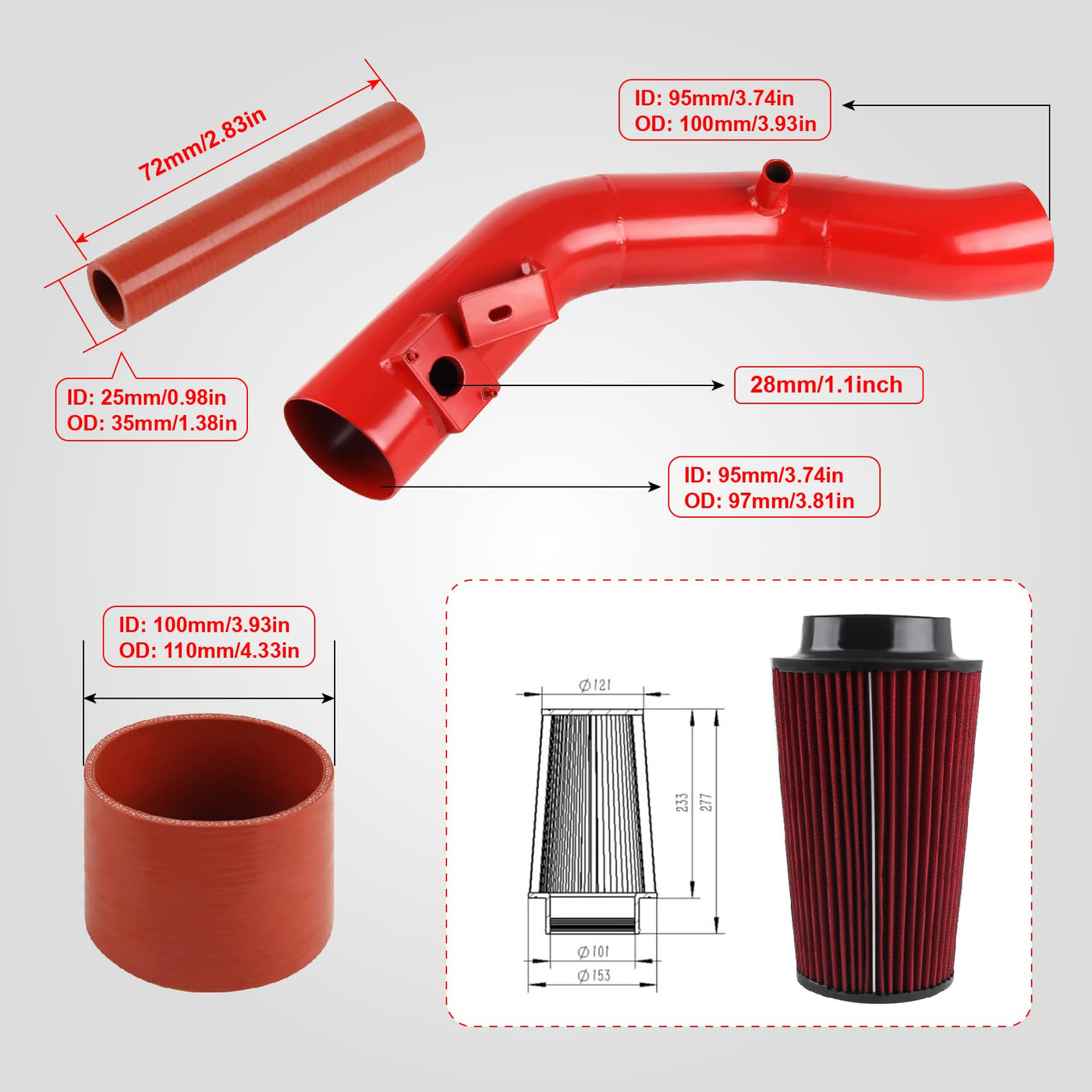 6.0 Cold Air Intake Kit Compatible with Ford F250 F350 Excursion 2003-2007 6.0L Diesel Engines (Red)