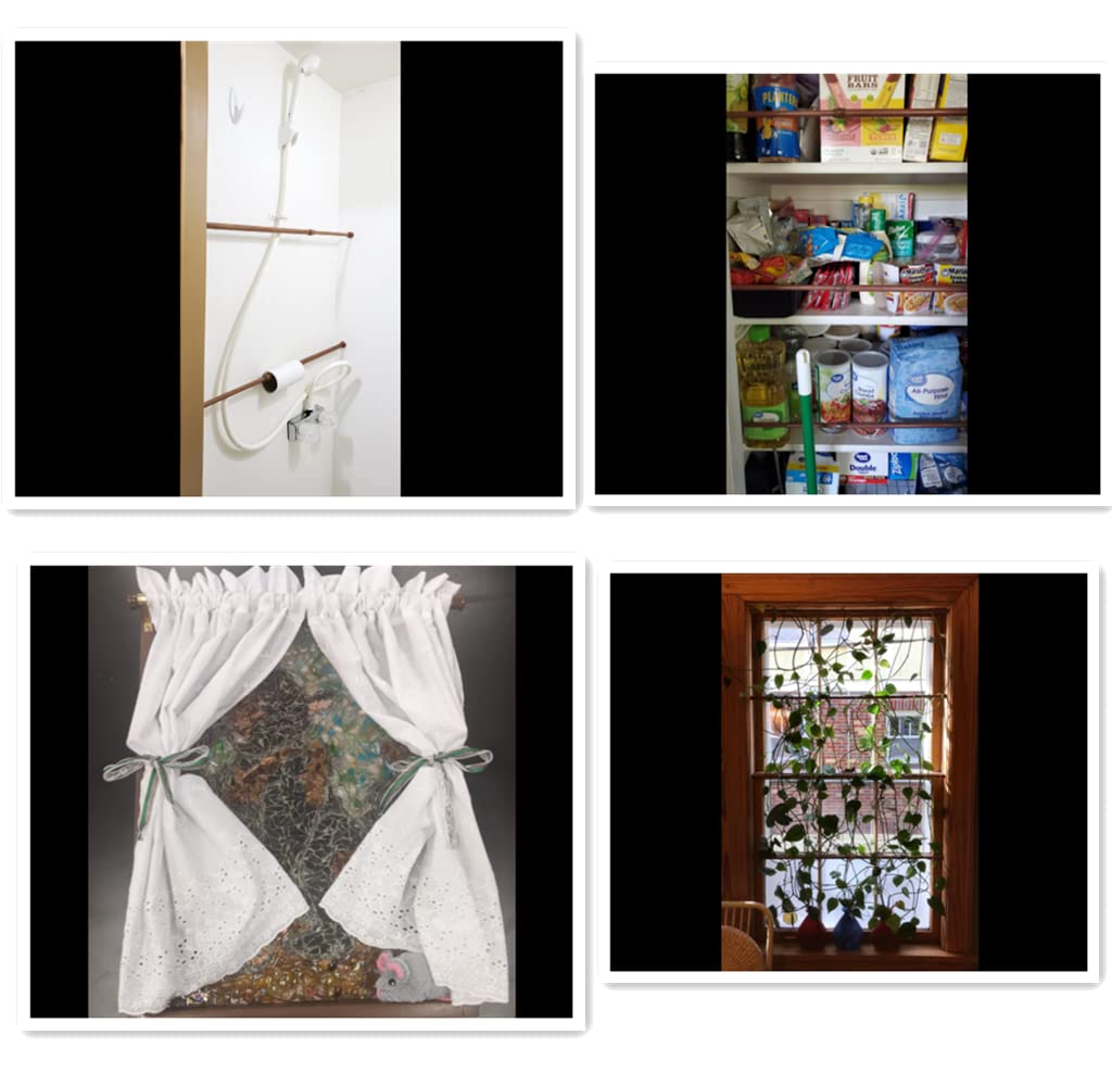 Specifications: Material: high-carbon steel with rust-proof lacquer. Diameter: 1.3 cm/ 0.5 inch Adjustable length: 55-90cm/ 21.6-35.4 inch. Application: door curtain rod, clothes pole, shoes rack, clothes pole, coat hanger, DIY projects, etc. Use them in the fridge to separate beverages and keep the cans or bottles from rolling around. It also can use inside various cabinets in travel trailer/RV to keep things from toppling or shifting. Ideal for hanging kitchen stuff.