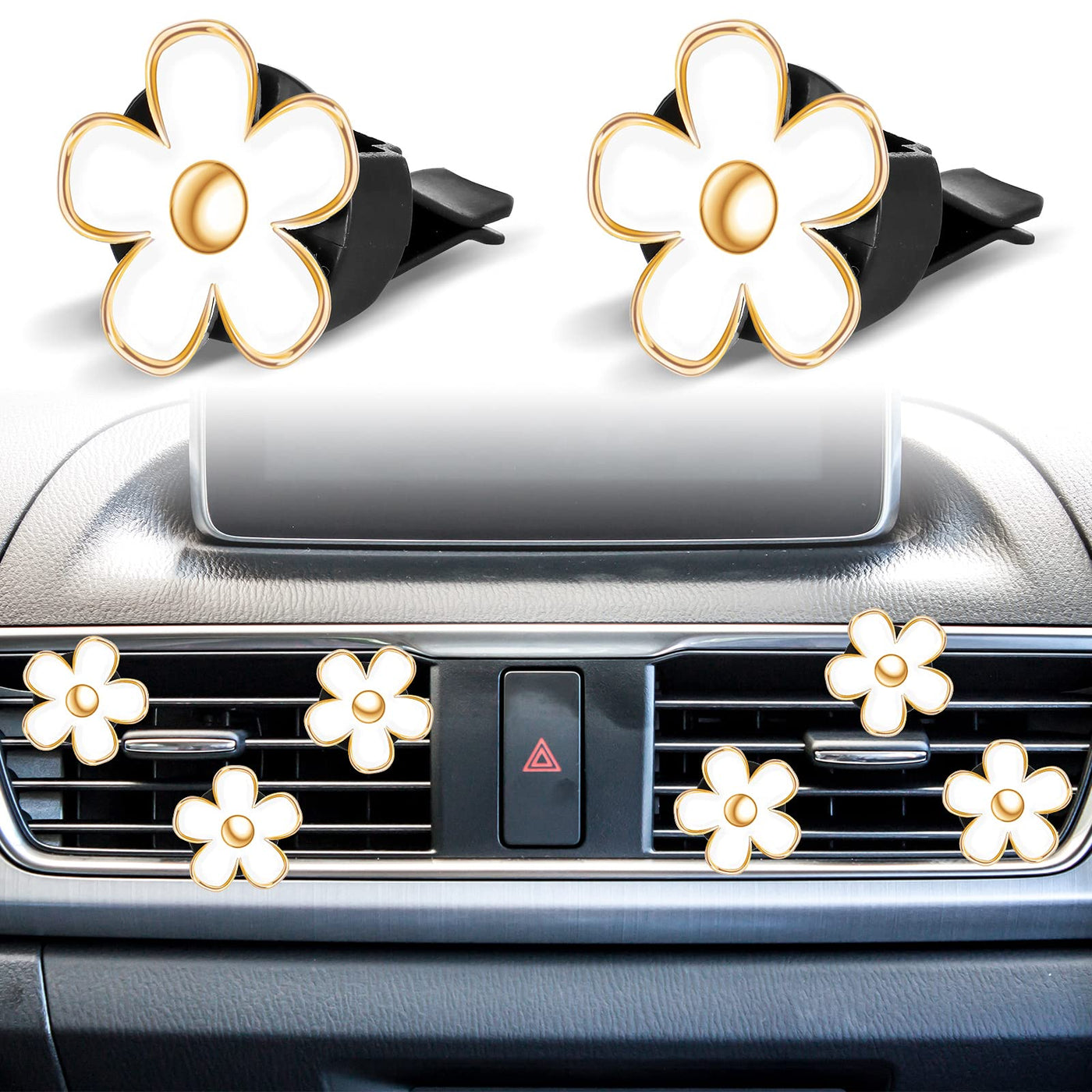6 Pcs Daisy Flower Air Vent Clip Air Conditioning Outlet Clip Car Air Freshener Clip Charm Car Inter Decor Accessories (White,3