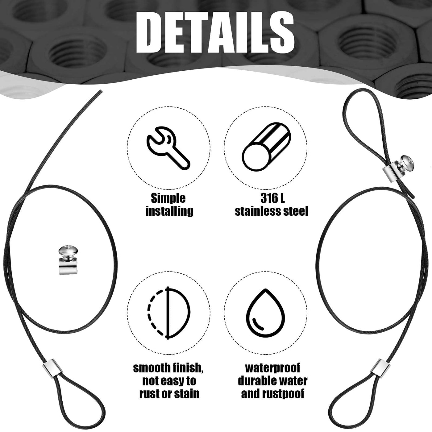 Q: What materials are used in the 6 Pieces Gate Latch Cable Pull?A: The gate latch cable pulls are made of high-quality steel, ensuring durability and resistance to rust and stains, making them suitable for outdoor use.