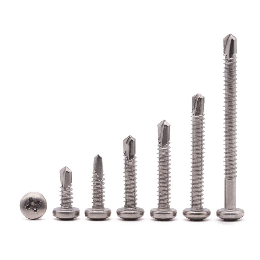#6 X 1/2" Pan Head Self Drilling Screws, Phillips Drive Self Tapping Screws, Sheet Metal Screws, 410 Stainless Steel, Full Thread With Drilling Point, No Pre-Drilled Needs, 100 Pcs