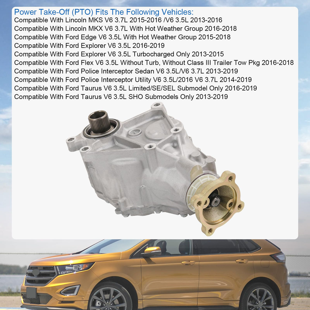 Application For: Compatible With Ford Explorer Xlt Sport Utility 4-Door 3.5L V6 Gas 2016-2018 Compatible With Ford Explorer Limited Sport Utility 4-Door 3.5L V6 Gas 2016-2018 Compatible With Ford Flex Sel Sport Utility 4-Door 3.5L V6 Gas 2016-2018 Compatible With Ford Flex Se Sport Utility 4-Door 3.5L V6 Gas 2016-2018 Compatible With Ford Taurus Limited Sedan 4-Door 3.5L V6 Gas 2016-2018 Compatible With Ford Taurus Sel Sedan 4-Door 3.5L V6 Gas 2016-2018 Compatible With Ford Taurus Se Sedan 4-Door 3.5L V6 Gas 2016-2018 Compatible With Ford Taurus Sel Sedan 4-Door 2.0L L4 Gas 2016-2017