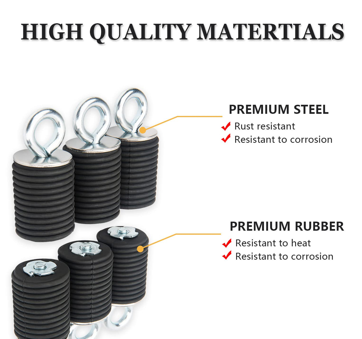Q: What is the material of these anchors and how durable are they?A: These tie down anchors are made from high-quality rubber compounds, designed to resist heat and corrosion. They can withstand various weather conditions, including rain and snow, ensuring a long service life.