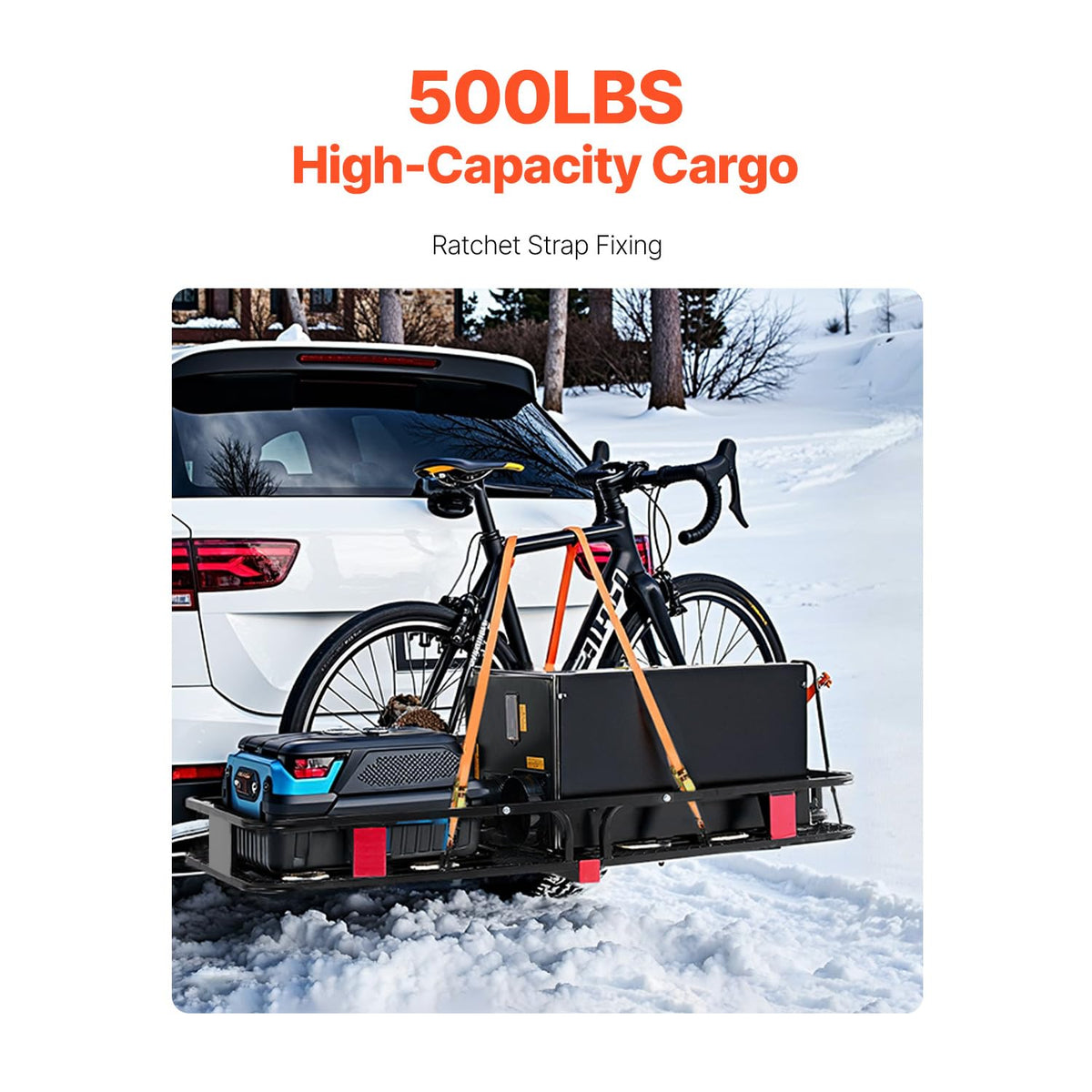 70'' x 30'' x 6'', Hitch Cargo Carrier, 500 lbs Capacity with Ratchet Straps & Cargo Bag, Folding Hitch Mount Cargo Carrier Bask