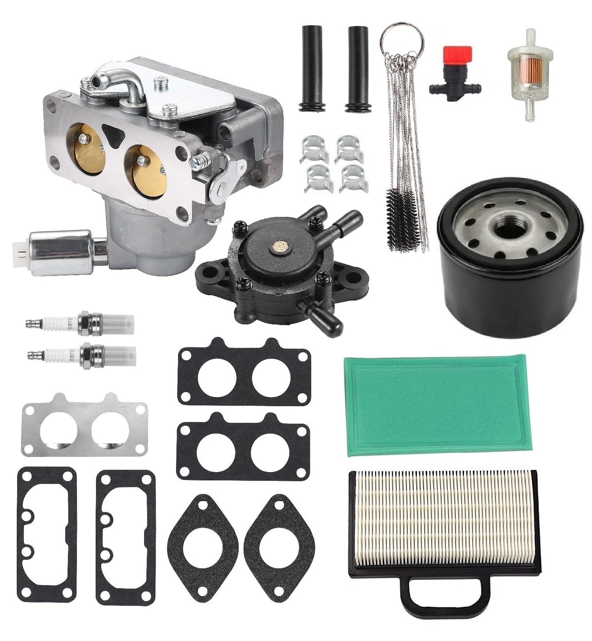 Q: What is included in the packaging of the 791230 Carburetor?A: The package includes 1 x 791230 Carburetor, 1 x 125424 Oil Filter, 1 x Fuel Pump, 1 x additional oil filter, 2 x spark plugs, 1 x set of air filters, 2 x 694000 Vacuum Hoses, 1 x cleaning tools, and 1 x wire connector.