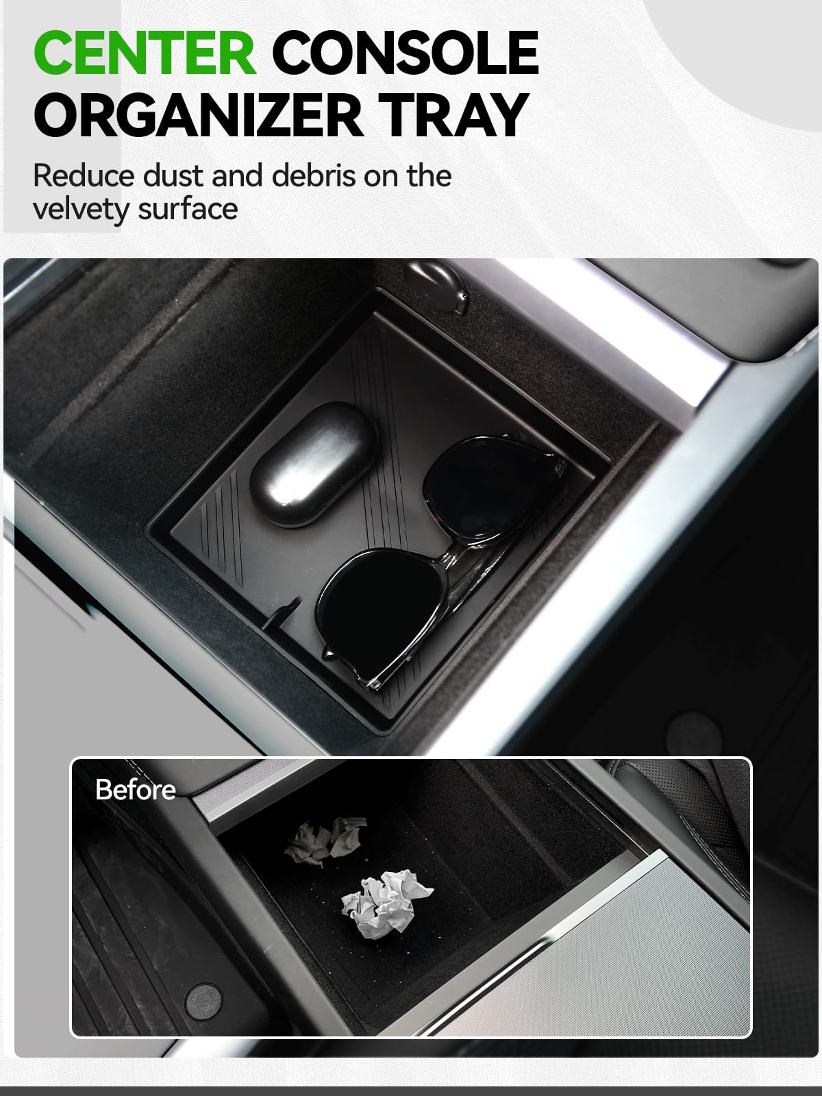 7PCS Center Console Organizer Tray for 2024 2025 Tesla Model 3 Accessories, Armrest Hidden Storage Box Cup Holder Charger Pad fo
