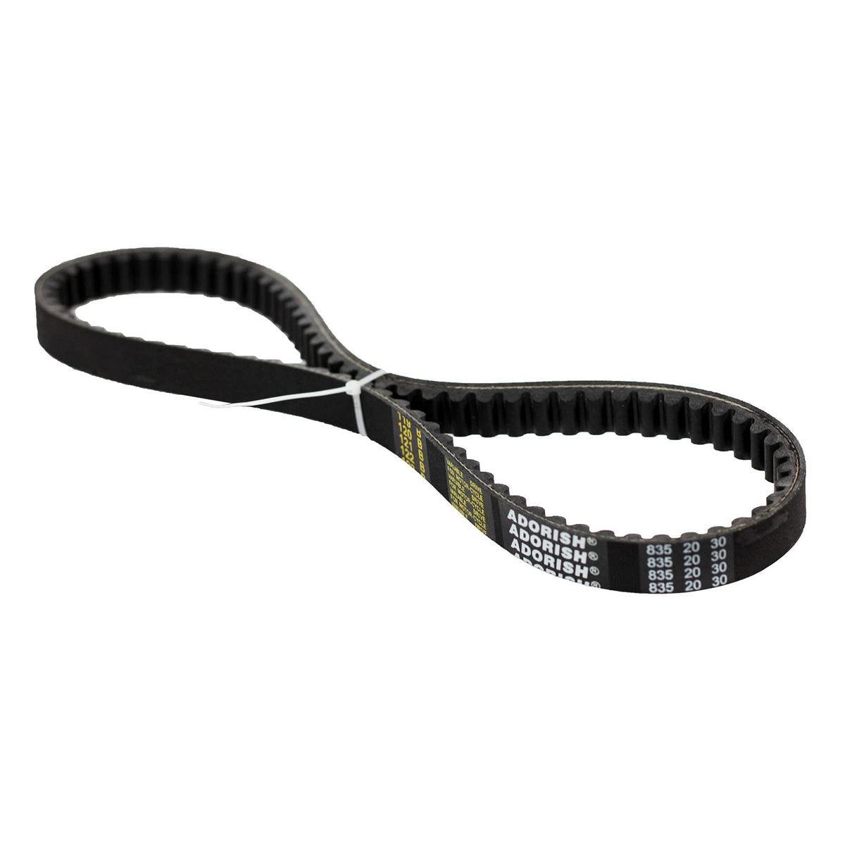 Q: What are the key features of this drive belt?A: The drive belt features high-quality fiber rubber construction for durability and high mileage, and it has specific dimensions of 835 mm in length, 20 mm in width, and a 30-degree teeth angle, making it reliable for performance.