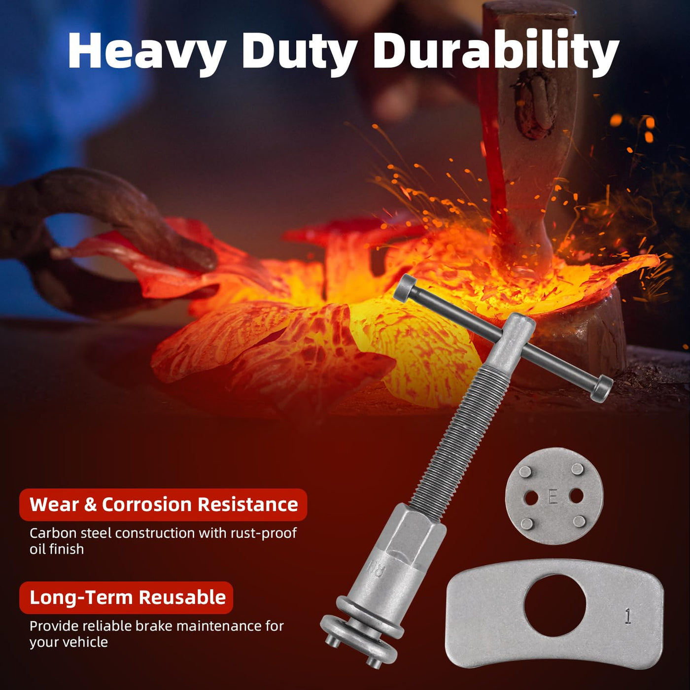 Q: What materials are used in the construction of this brake tool kit?A: The 8MILELAKE tool kit is constructed from high-quality carbon steel, featuring a rust-proof oil finish. This ensures durability, wear resistance, and long-term reuse, making it a reliable choice for brake pad and shoe replacement tasks.