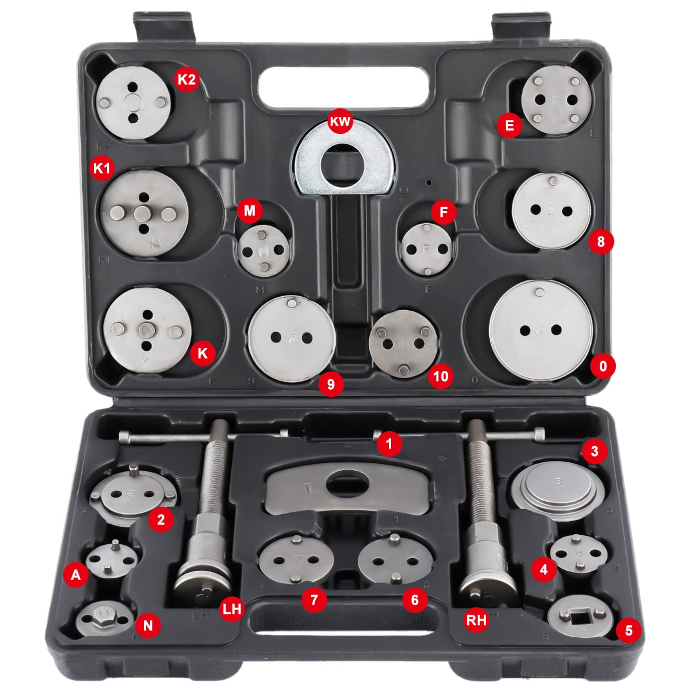 8Milelake 24Pcs Disc Brake Caliper Compression Wind Back Tool Kit, Heavy Duty Brake Piston Caliper Compression Tool Set For Brake Pad Replacement