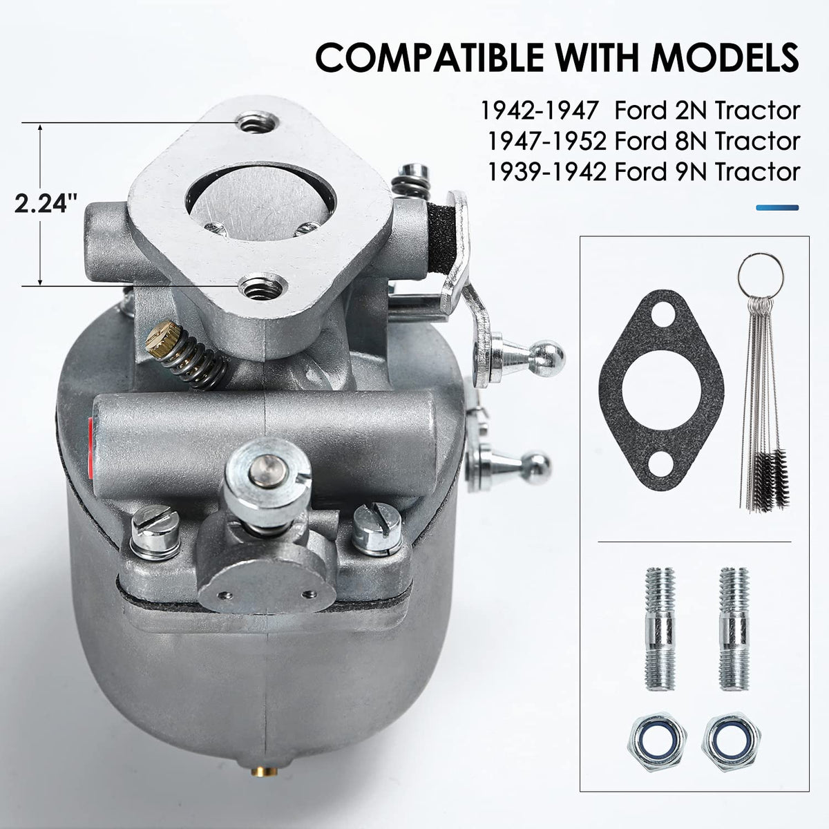 Replaces Part Numbers For Ford Oem #: 8N9510C,9N9510A, B3Nn9510A For Zenith Mfg Part #: 0-13876, 13876 For All States Ag Parts #: 100763 For Marvel Schebler Mfg Part #: Tsx33, Tsx241A, Tsx241B, Tsx241C Compatitable With Engine Models Fits For 1942 1943 1944 1945 1946 1947 Ford 2N Tractor Fits For 1947 1948 1949 1950 1951 1952 Ford 8N Tractor Fits For 1939 1940 1941 1942 Ford 9N Tractor Features Improved Engine Performance: By Optimizing The Air And Fuel Mixture Delivered To Your Engine, Our Carburetor Can Improve Horsepower, Torque, And Acceleration, Giving You The Power And Performance You Need. Durable Construction: Built To Last, Our Carburetor Is Made From High-Quality Materials That Can Withstand The Rigors Of Regular Use And Maintain Consistent Performance Over Time. Package Included 1X Carburetor 3X Gaskets 2X Screws & Bolts 1X Fuel Inlet 1X Cleaning Brush
