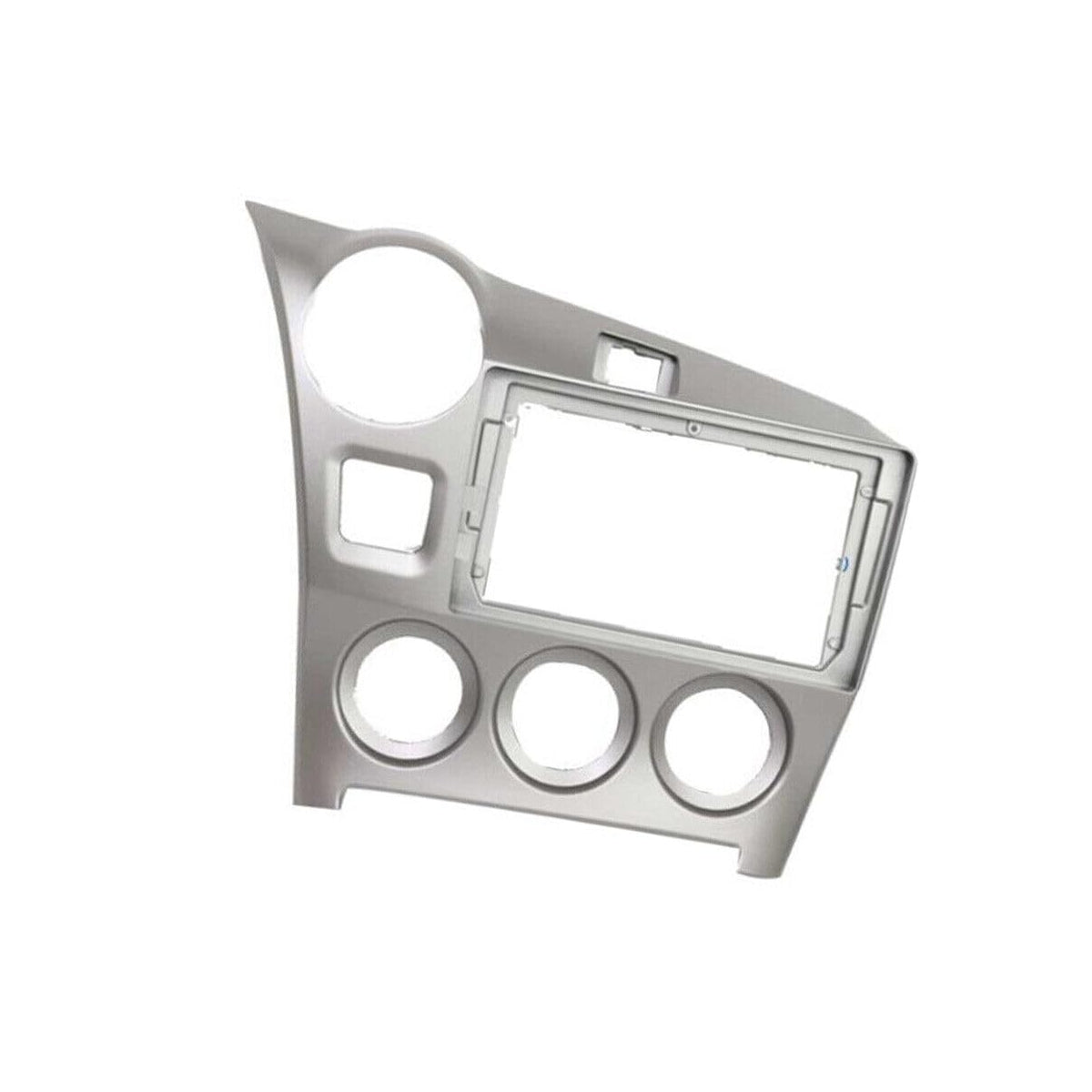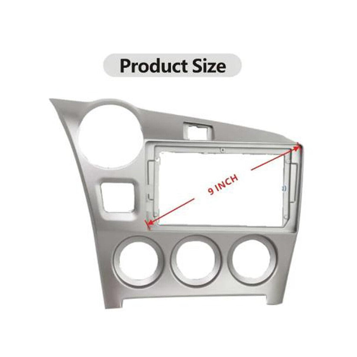 Q: What features make this fascia frame a good choice for my car?A: This fascia frame provides a perfect fit for specific Toyota Matrix models, features a stylish silver color for an elegant look, and allows for the installation of a 9'' car radio stereo, enhancing your vehicle's entertainment options.