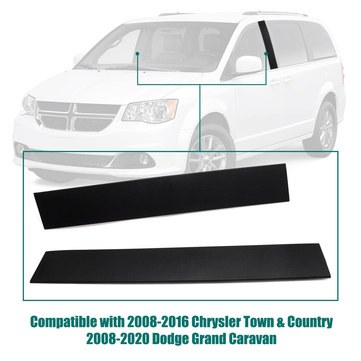 Fitment: For Chrysler Town & Country 2008-2016 For Dodge Grand Caravan 2008-2020 Installation Step: 1. Slide the old item up to take off 2. When install the B pillar, don't remove the tape on the adhesive (peel off one or two inch only) 3. Slide it in place up and down when install and leave enough place 4. Peel adhesive off carefully once its in place. Package Including: 2 x Front Side Outer B Pillar Trim Molding