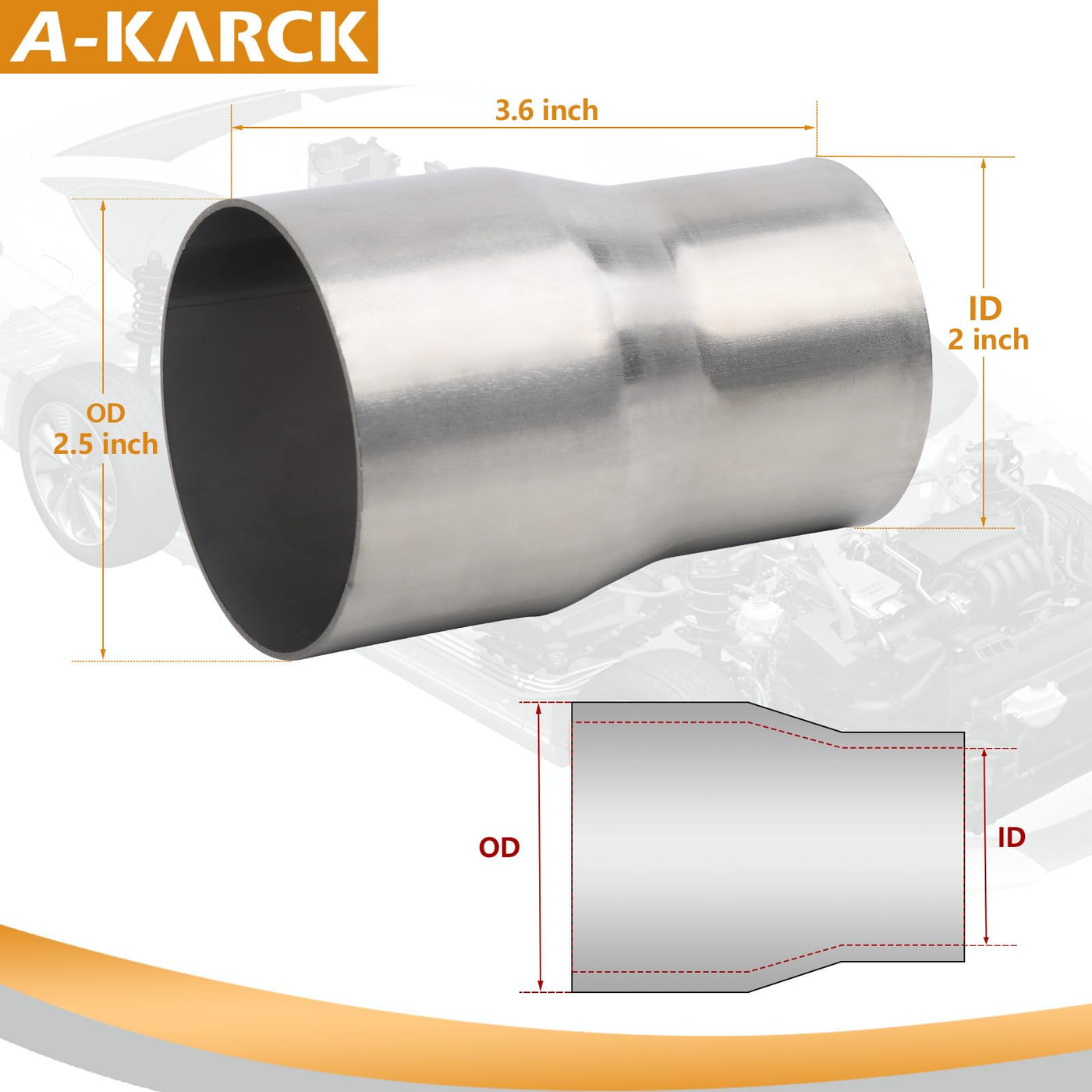 A-KARCK Stainless Steel Exhaust Adapter 2'' ID to 2.5'' OD, Engine Exhaust Pipe Reducer 3.6'' Overall Length