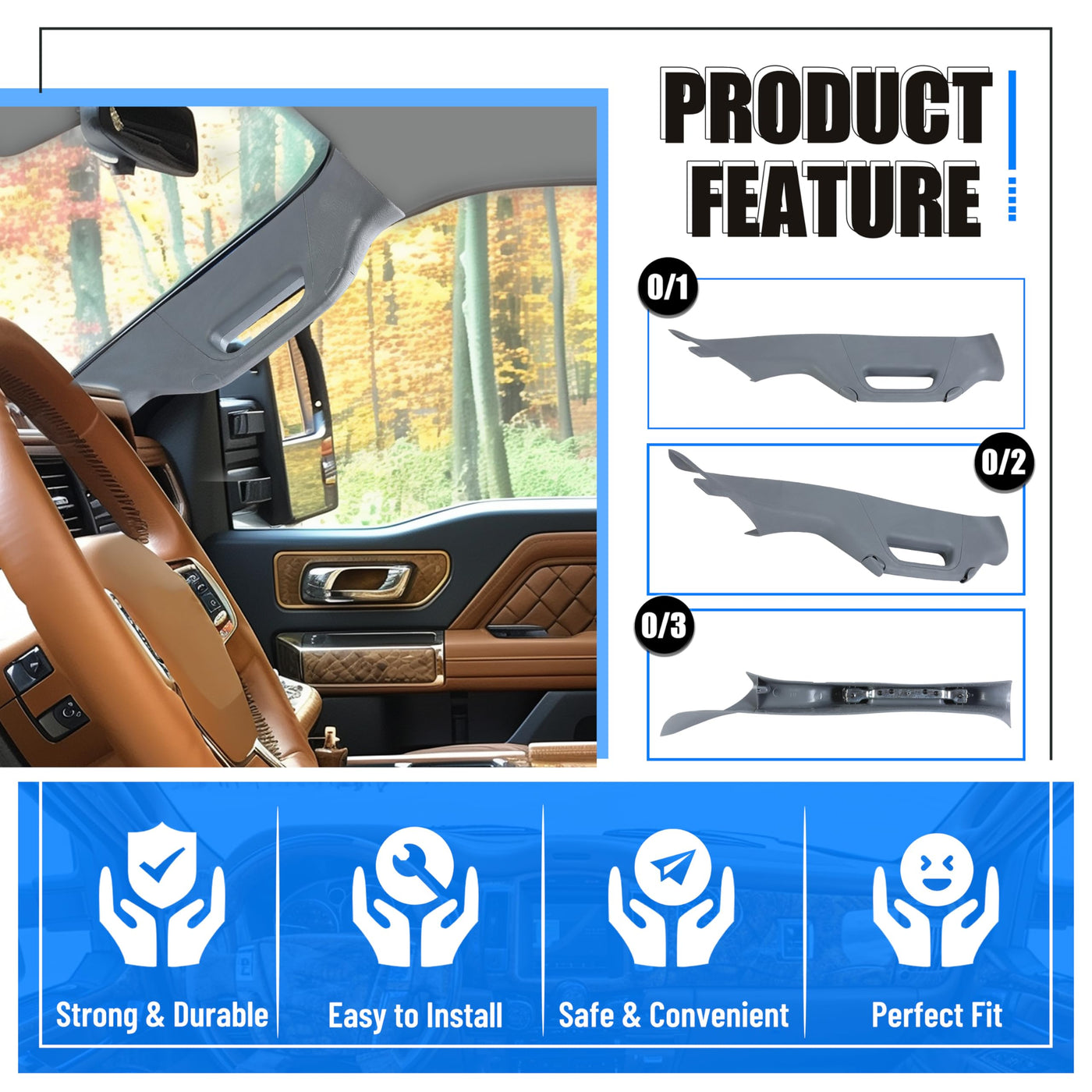 A Pillar Grab Handle Interior Trim Right Passenger Side Compatible With 2011-2016 Ford F-250 F-350 F-450 F-550 Super Duty Replac