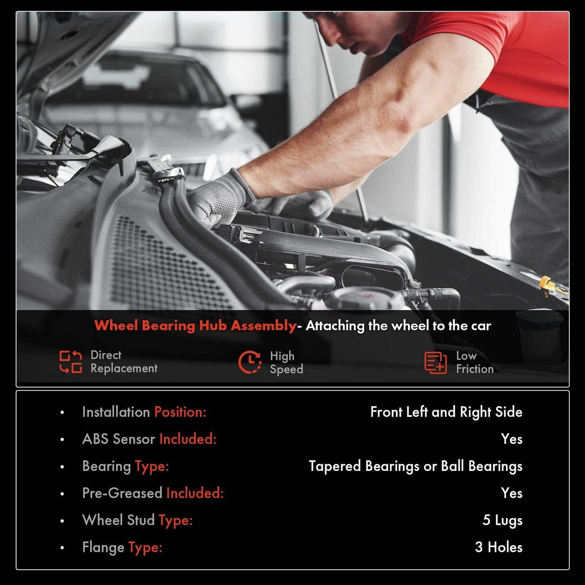 A-Premium 2 X Front Wheel Bearing And Hub Assembly With Abs & 5-Lug Compatible With Chevrolet Malibu 2004-2012, Hhr Ss 2008-2010, Cobalt Ss 2008-2010, Pontiac G6 2006-2010, Saturn Aura 2007-2009
