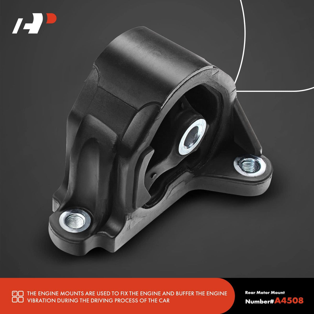 Q: What is included in the A-Premium Engine Motor Mount Transmission Mount Set?A: The A-Premium Engine Motor Mount Transmission Mount Set includes one Front Motor Mount, one Front Right Motor Mount, one Rear Motor Mount, and one Transmission Mount, providing a complete solution for your engine support needs.