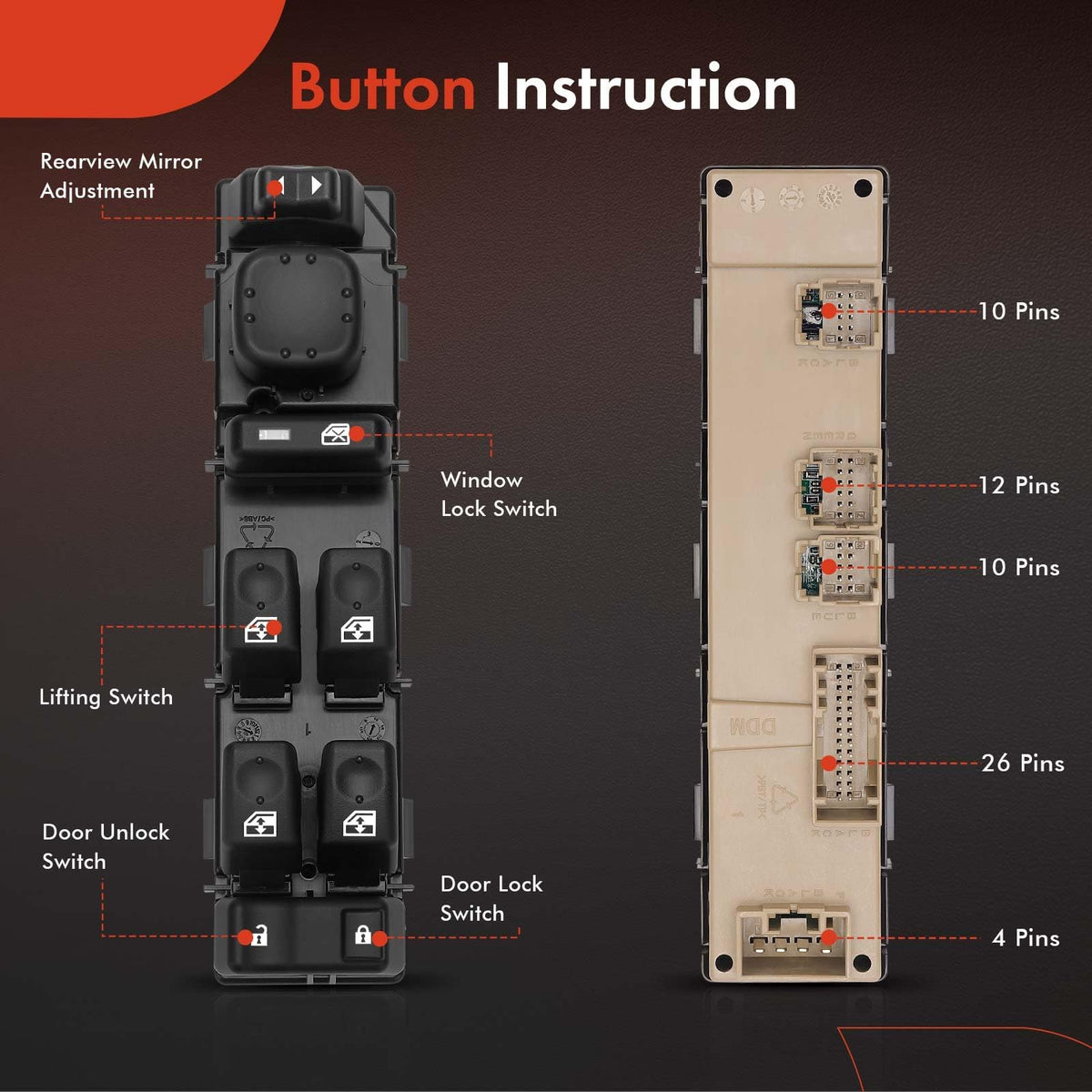 A-Premium Power Window Switches Are An Ideal Choice To Replace Your Broken Power Window Switches. All Power Window Switches Meet Or Exceed Oem Specifications. Due To High Manufacturing Standard, It Will Come With One Year Quality Guarantee.