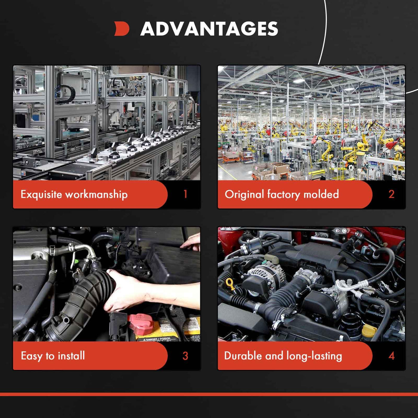 Q: What benefits does the A-Premium air intake hose provide?A: The A-Premium air intake hose enhances your vehicle's performance with its durable rubber construction, which resists oxidation and aging. It also prevents cracking due to drying and high temperatures, ensuring reliable and long-lasting performance.