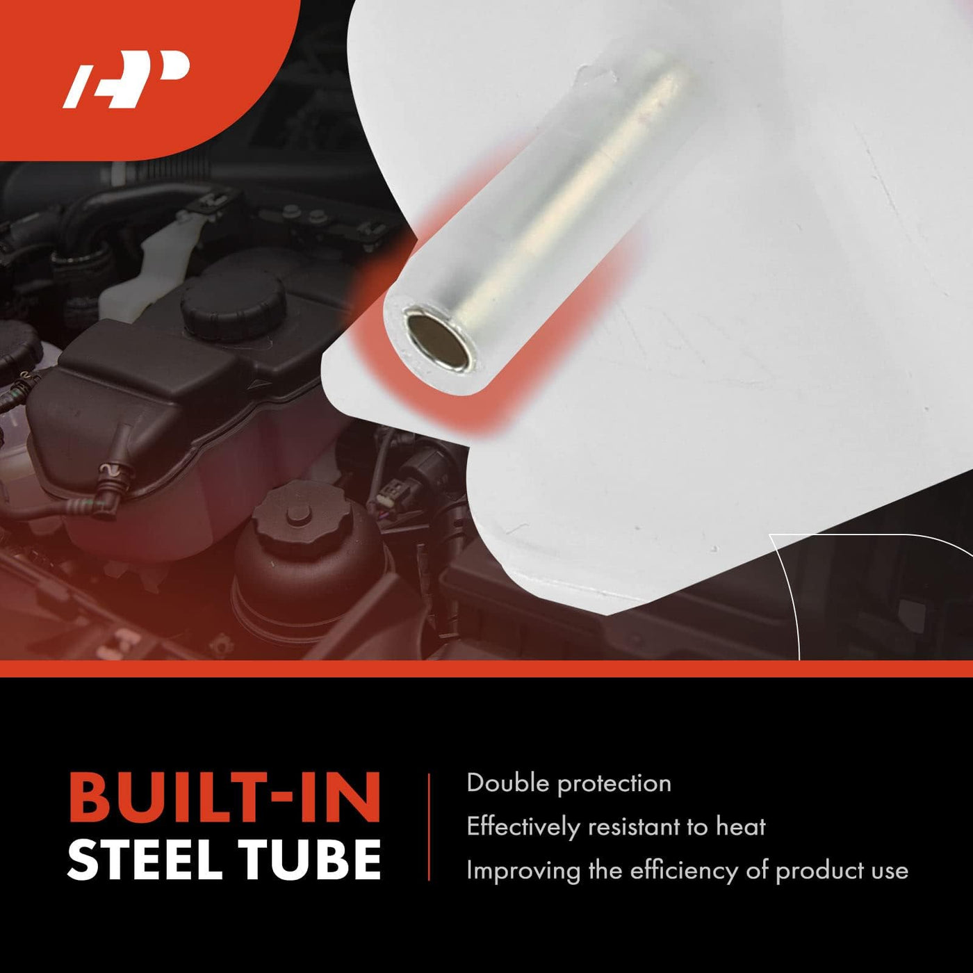 Q: What are the key features of this coolant reservoir tank?A: Key features of the A-Premium Coolant Reservoir Tank include a pressurized design with a maximum pressure rating of 17 PSI, a spring-loaded twist cap, and a robust construction using high-quality plastic materials. The tank is designed to withstand excessive heat and vibration, ensuring durability and efficiency.