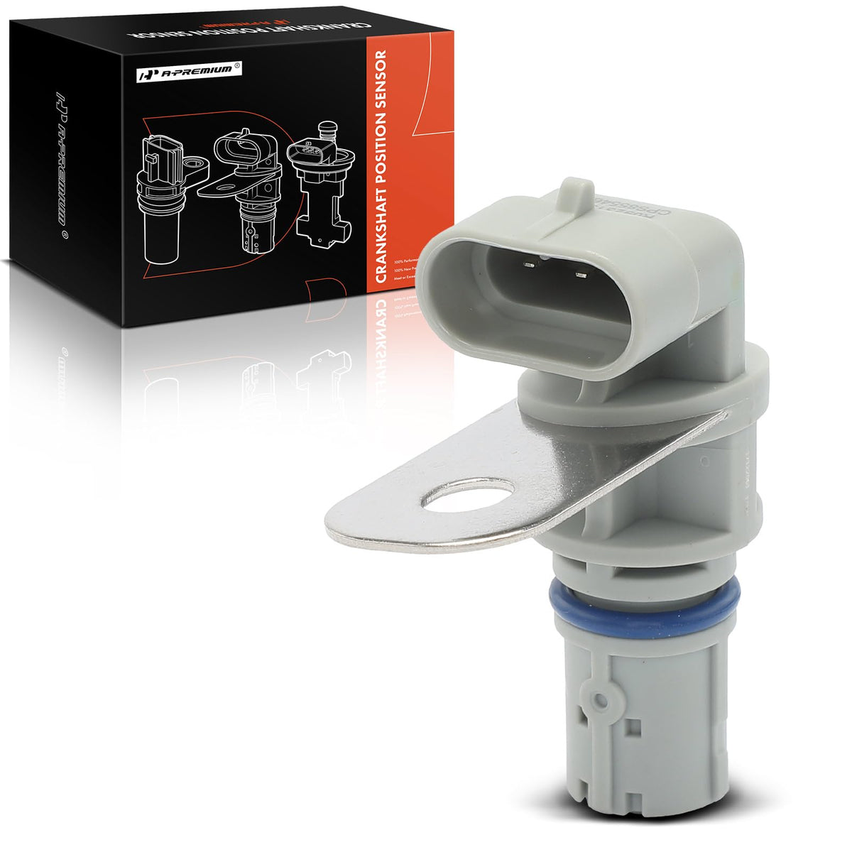 Q: What are the specifications of the A-Premium Crankshaft Position Sensor?A: The A-Premium Crankshaft Position Sensor features a terminal quantity of 3 pins, a blade terminal type, and comes in a gray color. It is sold as a single unit and packaged in a box for protection during shipping.