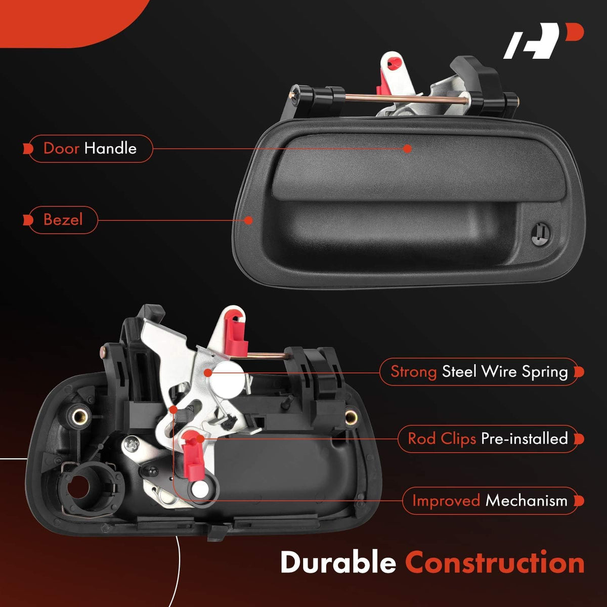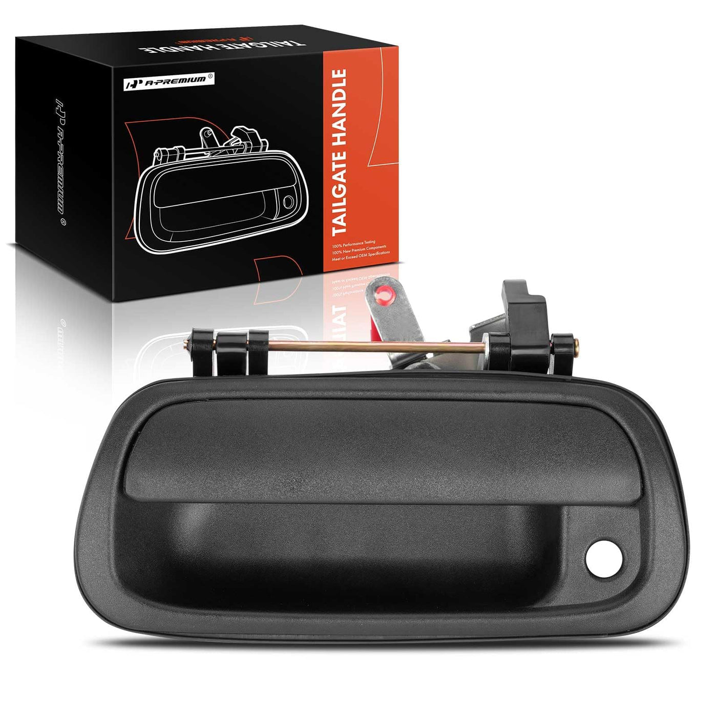 A-Premium Exterior Tailgate Handle Assembly - Compatible With Toyota Tundra 2000 2001 2002 2003 2004 2005 2006 -Textured Black, W/Keyhole, Tailgate Handle Latch - Replace Parts 69090-Oc010, To1915110