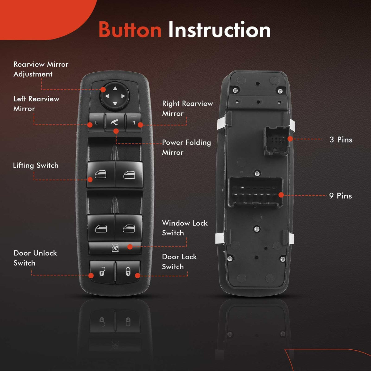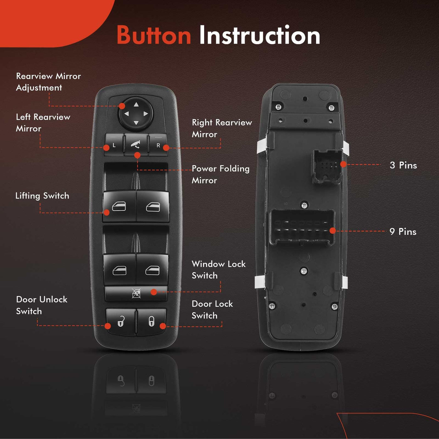 A-Premium Front Driver Side Master Power Window Switch Compatible with Dodge Grand Caravan & Chrysler Town & Country, 2008 2009, Replace# 68029021AA, 68029021AB