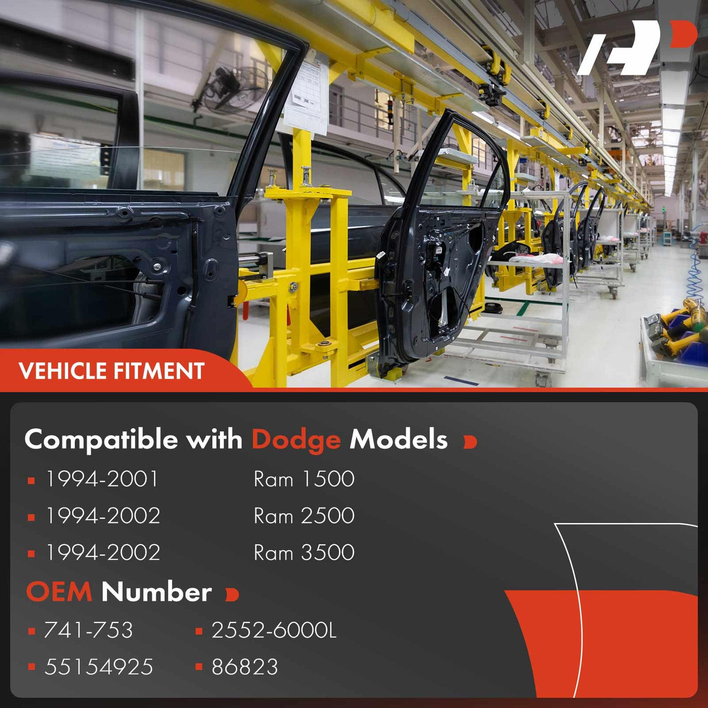 A-premium window regulators are an ideal choice to replace your broken window regulators. All window regulators meet or exceed OEM specifications. Due to high manufacturing standard, it will come with one year quality guarantee. Application: Compatible with Dodge Ram 1500 1998-2001 All Engine Crew Cab Pickup Front Left Compatible with Dodge Ram 1500 1995-2001 All Engine Extended Cab Pickup Front Left Compatible with Dodge Ram 1500 1994-2001 All Engine Standard Cab Pickup Front Left Compatible with Dodge Ram 2500 1994-2002 All Engine Cab & Chassis Front Left Compatible with Dodge Ram 2500 1995-2002 All Engine Extended Cab Pickup Front Left Compatible with Dodge Ram 2500 1994-2002 All Engine Standard Cab Pickup Front Left Compatible with Dodge Ram 3500 1994-2002 All Engine Cab & Chassis Front Left Compatible with Dodge Ram 3500 1995-2002 All Engine Extended Cab Pickup Front Left Compatible with Dodge Ram 3500 1994-2002 All Engine Standard Cab Pickup Front Left OEM Number: 741-753, 55154925, 2552-6000L, 86823 Location: Front LeftQuantity Sold: One Piece