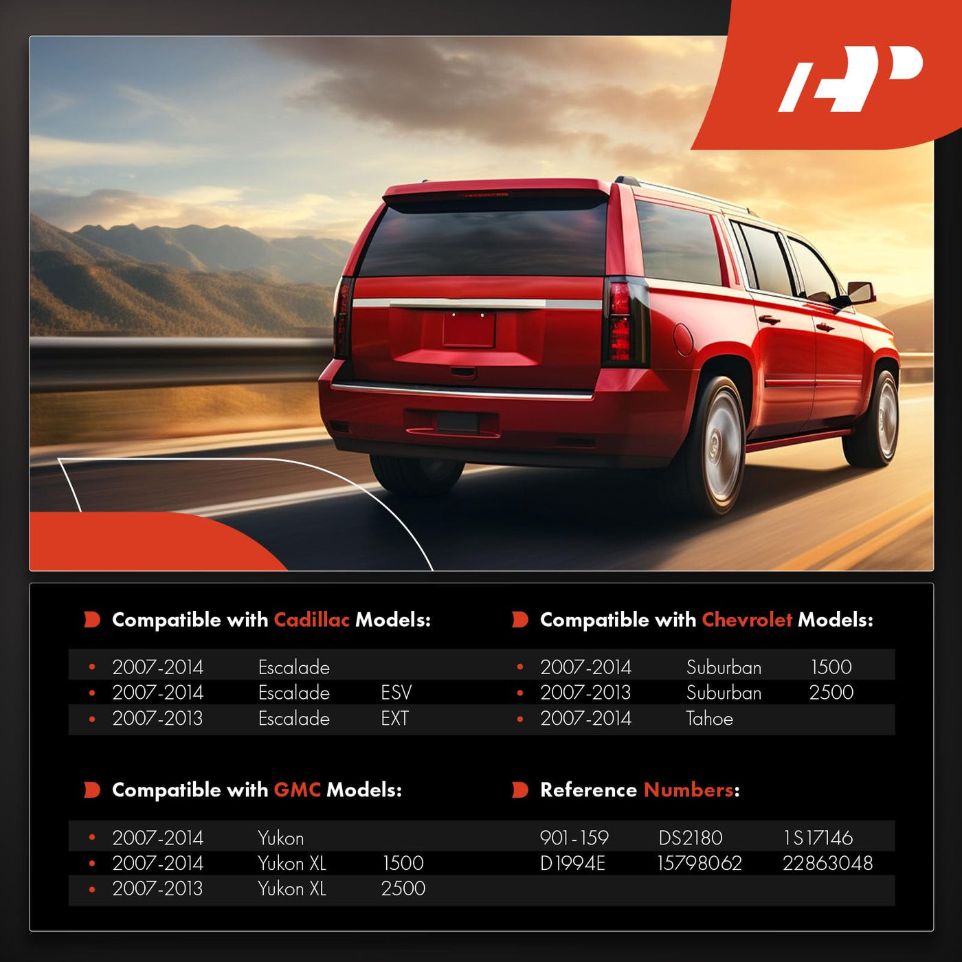 Q: What vehicles are compatible with the A-Premium Rear Hatch Button Back Liftgate Window Glass Release Switch?A: The A-Premium Rear Hatch Button is compatible with various models including the 2007-2014 Cadillac Escalade, Escalade ESV, Escalade EXT, 2007-2014 Chevrolet Suburban 1500, Suburban 2500, Tahoe, and 2007-2014 GMC Yukon and Yukon XL 1500/2500.